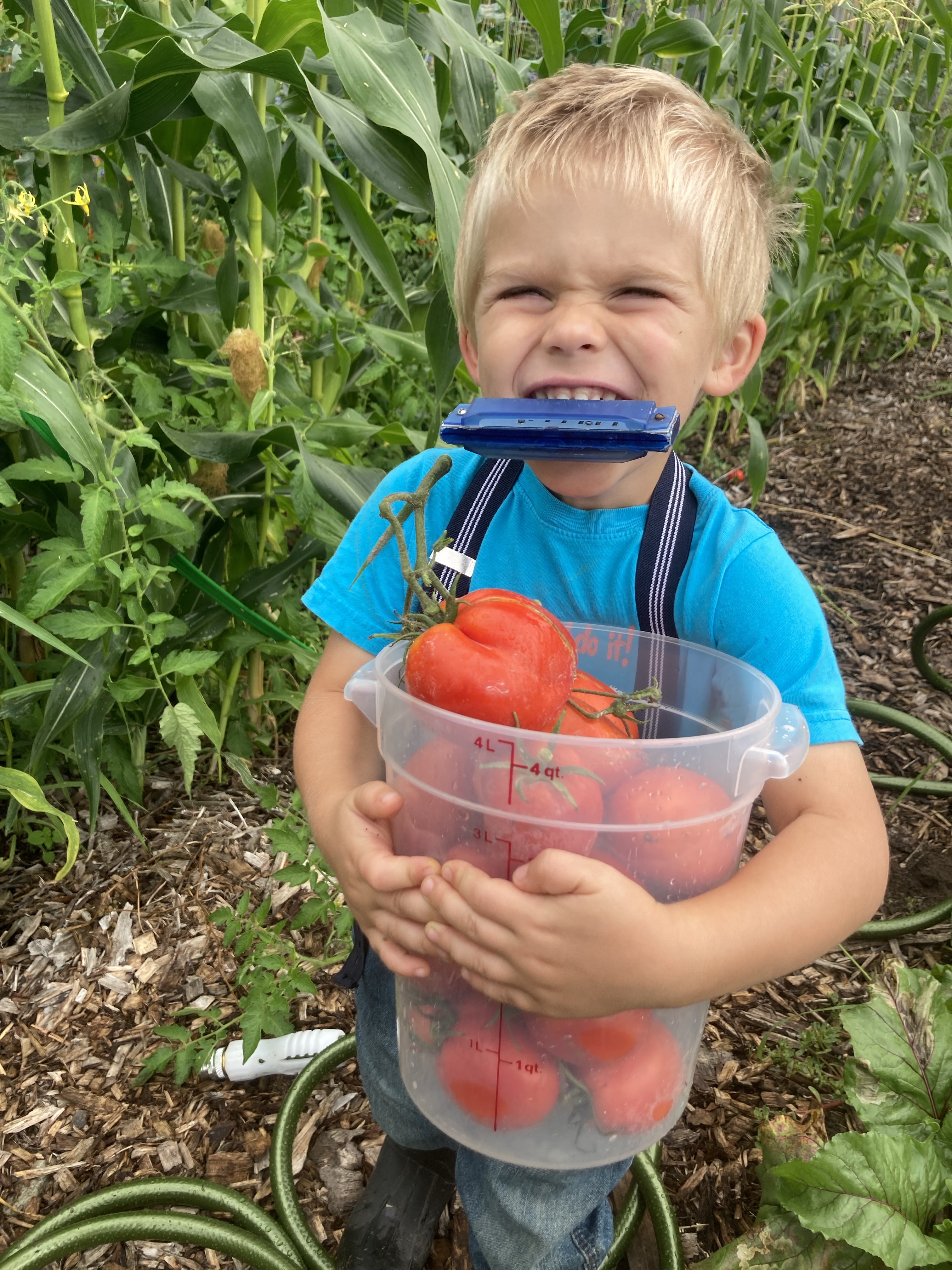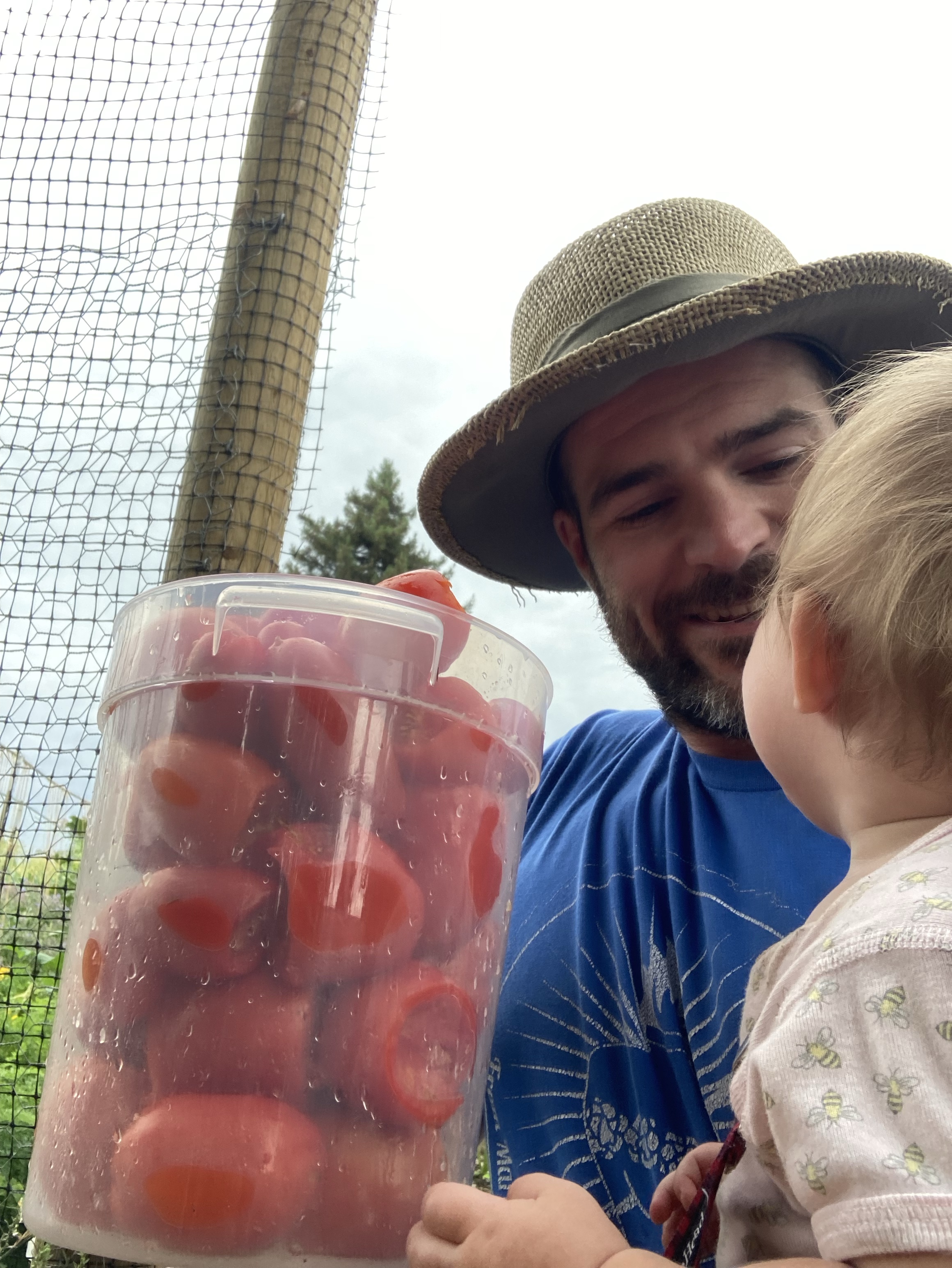Tomato yield has been improving, we were able to get four quarts of sauce tomatoes in the freezer. We had about twice that many with end rot on them, so we are going to treat them with calcium again as soon as we can.