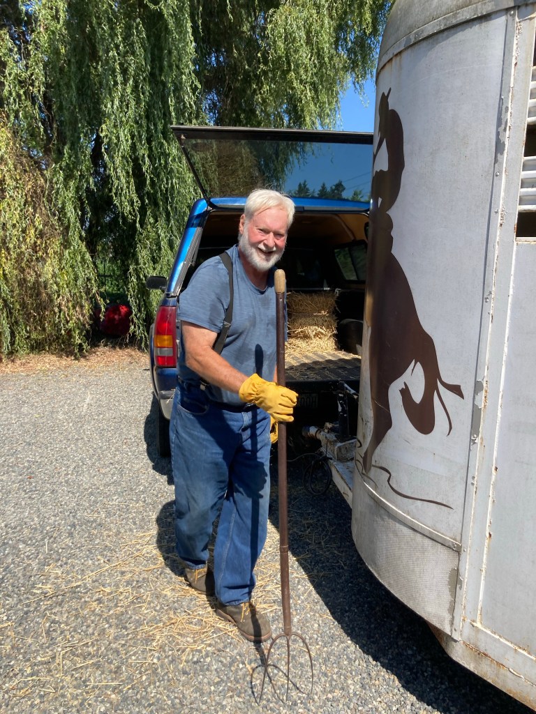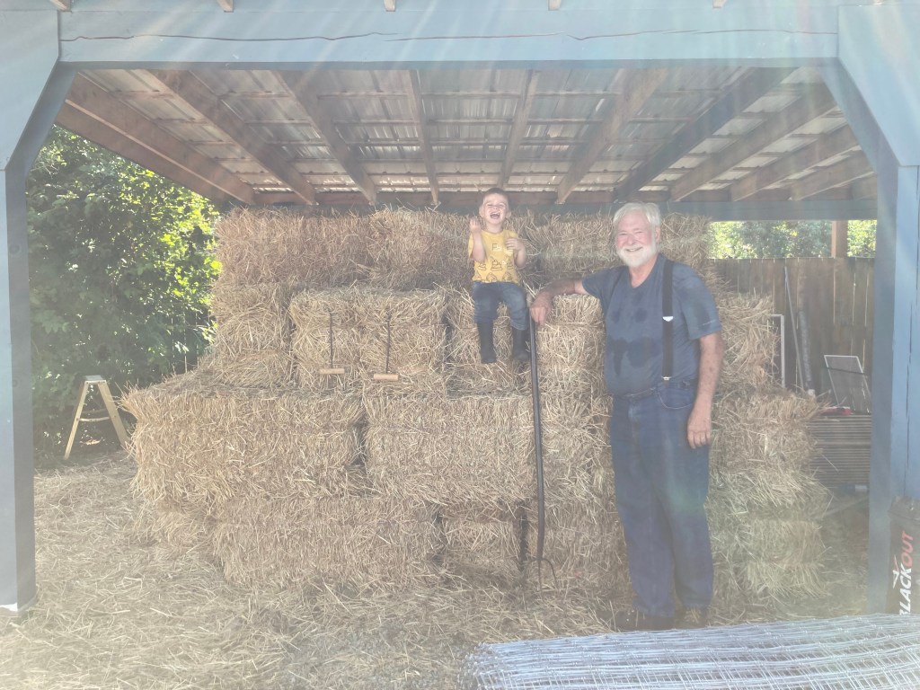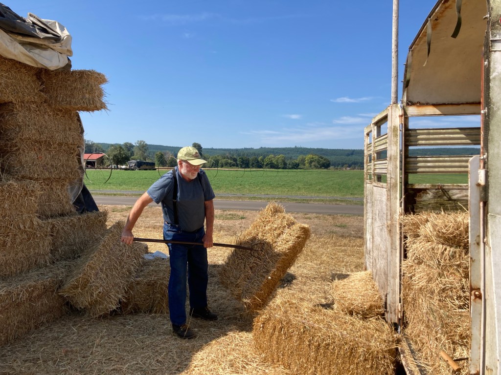 Busy day, yesterday. Daddy, Seppi and Papa hooked up the trailer to Papa’s big truck and drove south to Adna. We bought some straw bales from the same lady we bought them from last year.