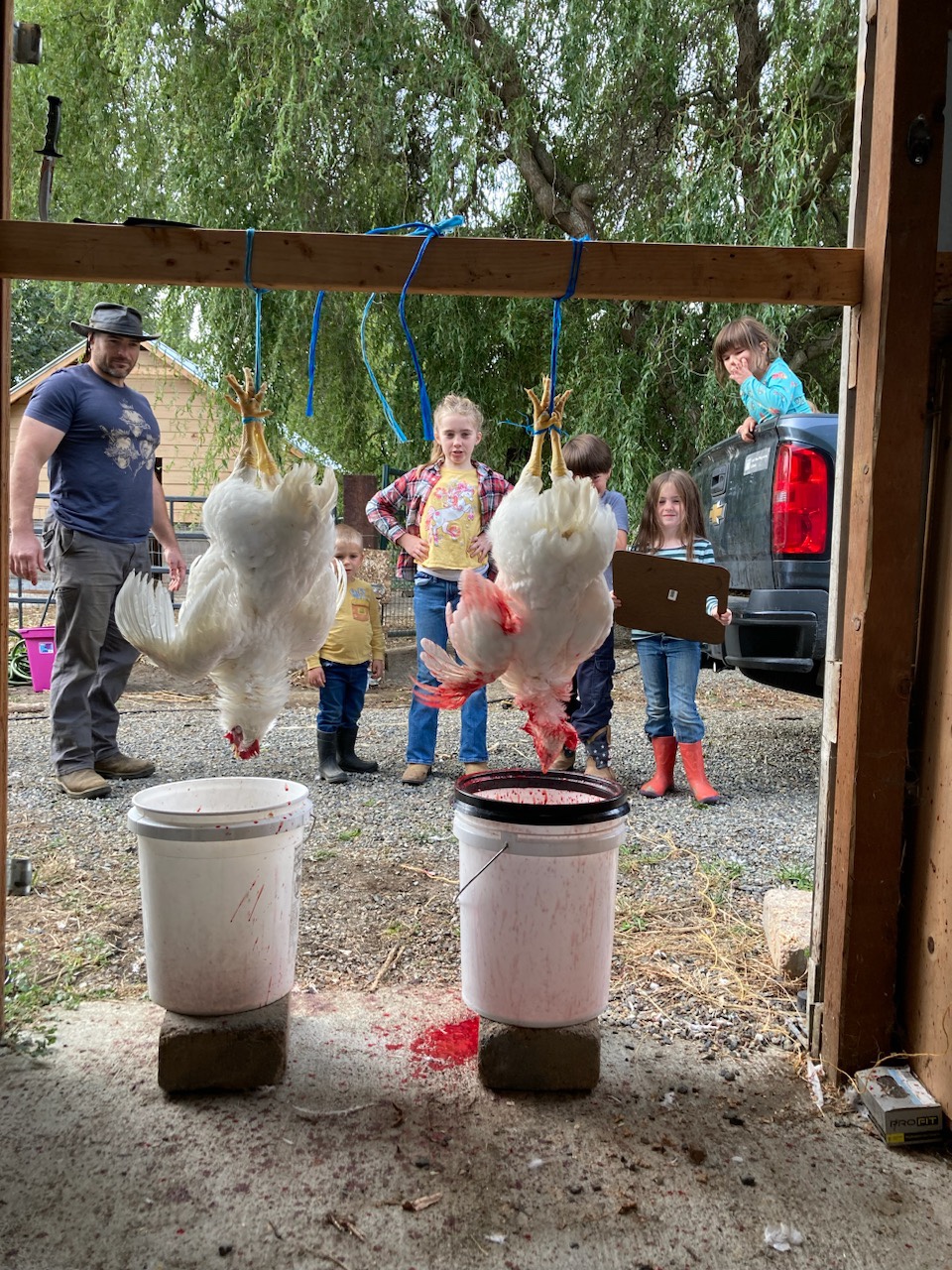 Saturday was a busy day at the farm. We had 11 chickens to butcher. The kids helped us get set up,