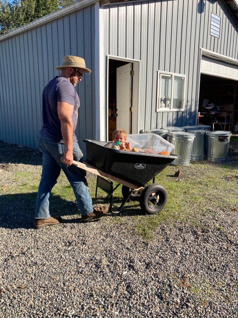 Ellie is such a good little tomato washer! We got them all washed and put in the freezer, so in a few months we will be able to get them all out and boil them down and sauce them.