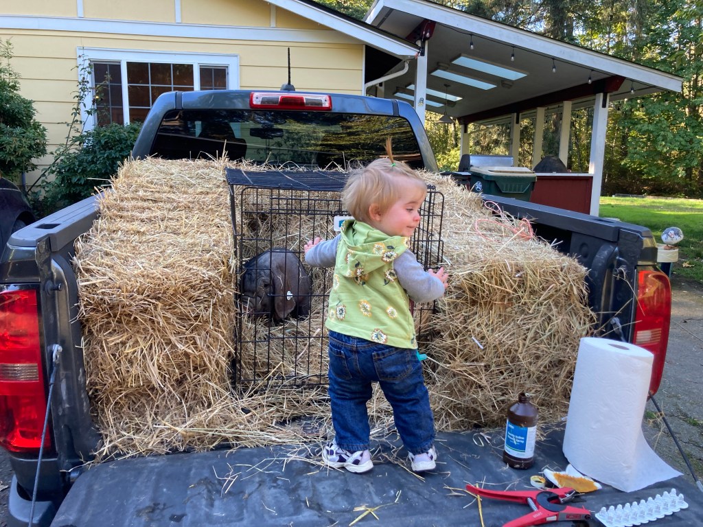 Today Daddy and Seppi and Winnie drove down to Olympia to buy our new pigs.