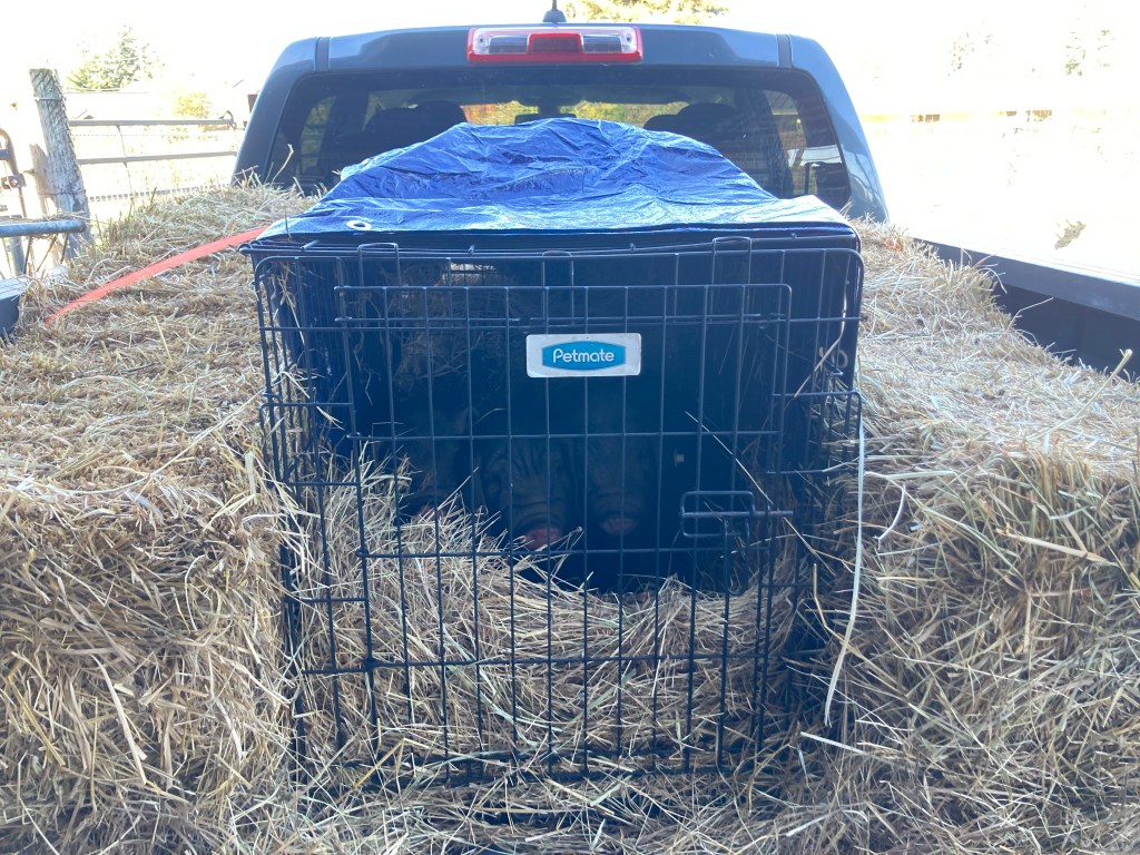 We made a little tent for them before we got out on the highway to protect them from the wind chill.