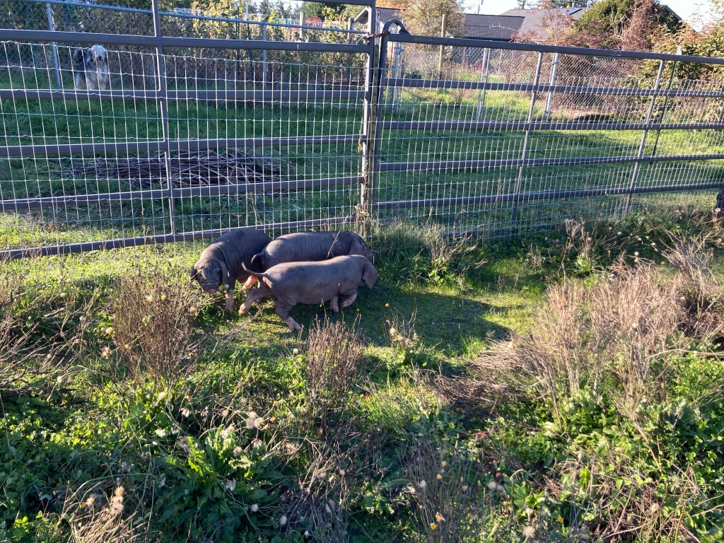 Neither the pigs, nor Ellie, were sure about them being in their new home.