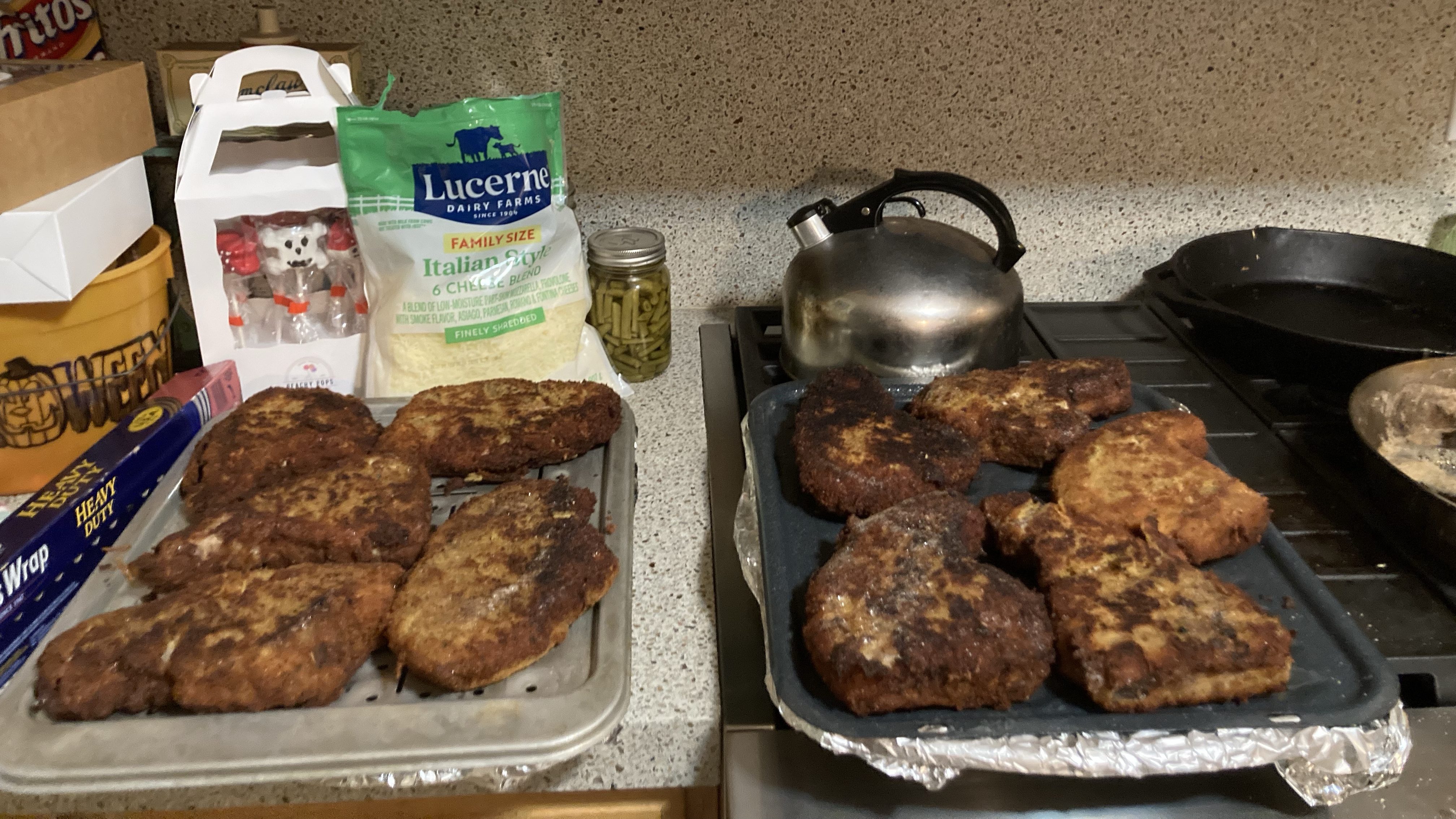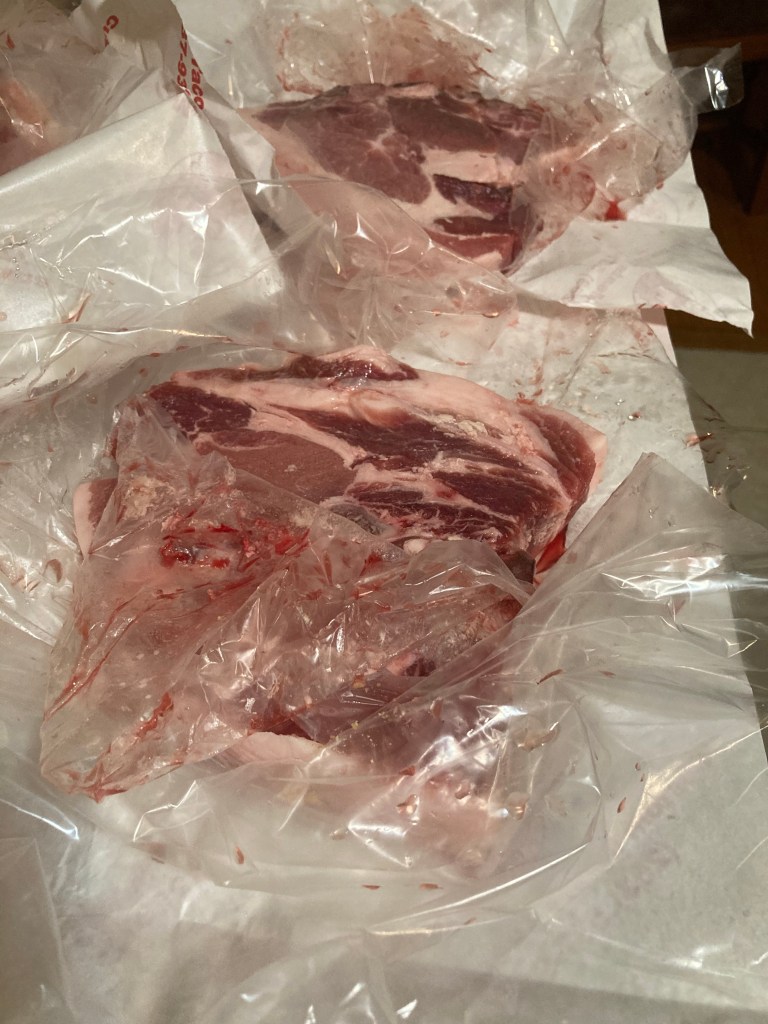 Everything turned out delicious, although the pork chops from our pigs are much meatier and more flavorful than your typical store-bought pork chops, and are thicker (one inch thick). We only ate five of the ten pork chops we cooked between 3 adults and 6 children. Something to keep in mind next time.
