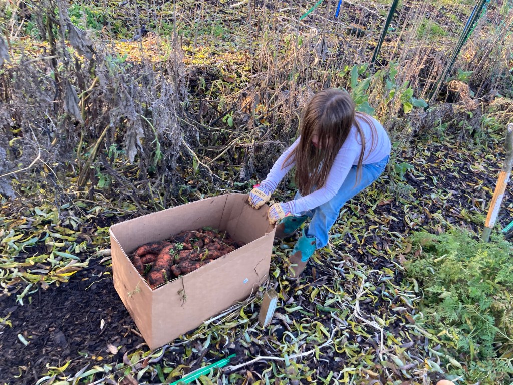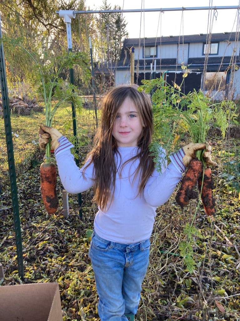 After we pulled the parsnips and the main family carrot patch, we moved over to pull Evie and Ellie’s carrots. Ellie’s patch was first in line because Evie was still pulling parsnips. Boy did she get a bumper crop!