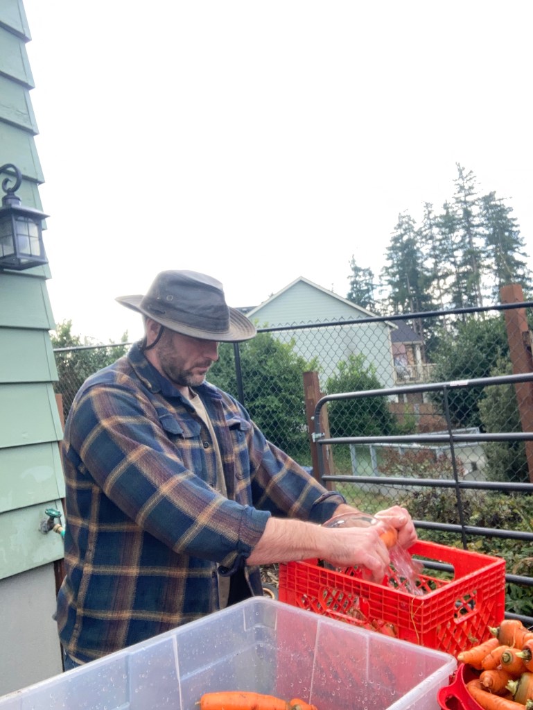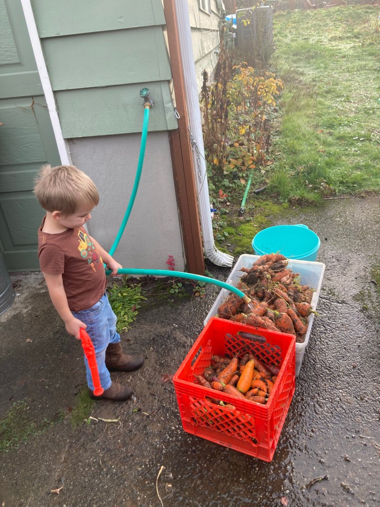 Then after the parsnips we had all of the carrots to clean. Seppi took off his coat and dropped it somewhere random… as usual.