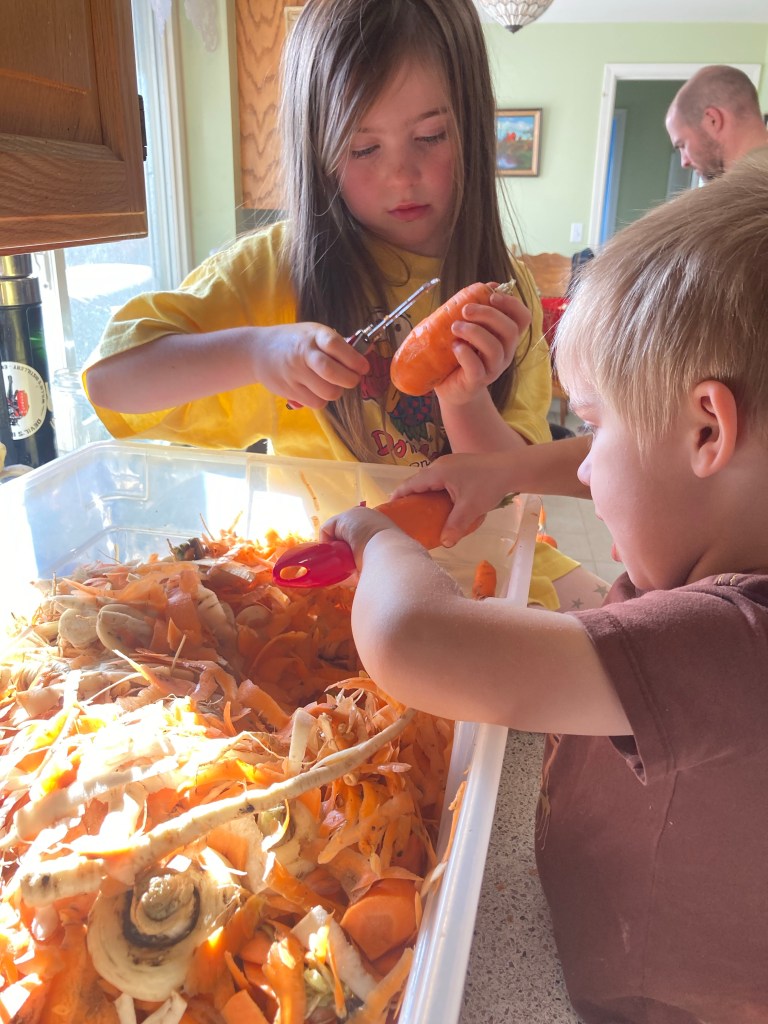 Ellie also turned out to be an expert carrot peeler, and peeled 4 or 5 dozen of them by herself!