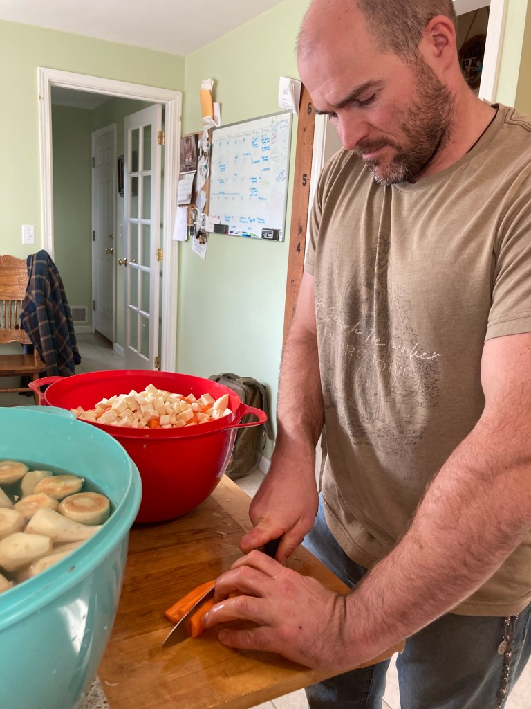 First we had to wash all the parsnips and carrots. Daddy and Seppi did this outside, despite the near freezing temperatures, because we didn’t want to fill the kitchen sinks with dirt and leaves.
