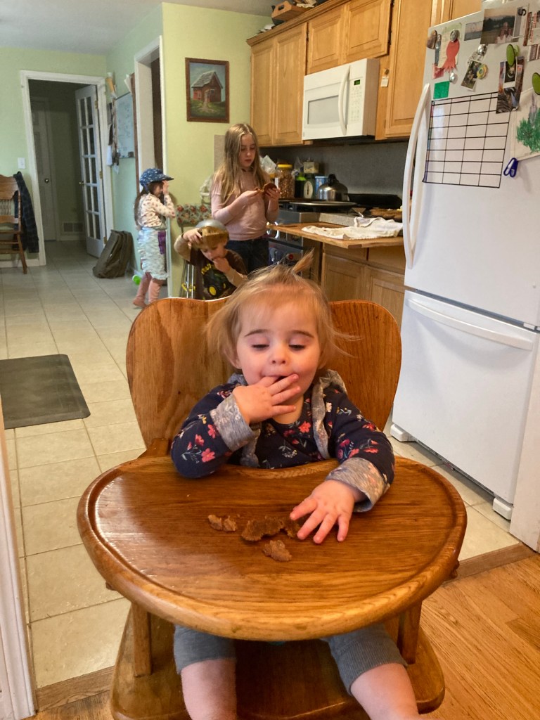 So we picked up our baking and went to the farm to do chores.