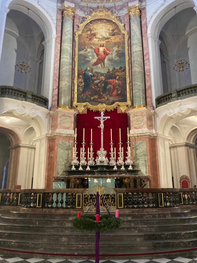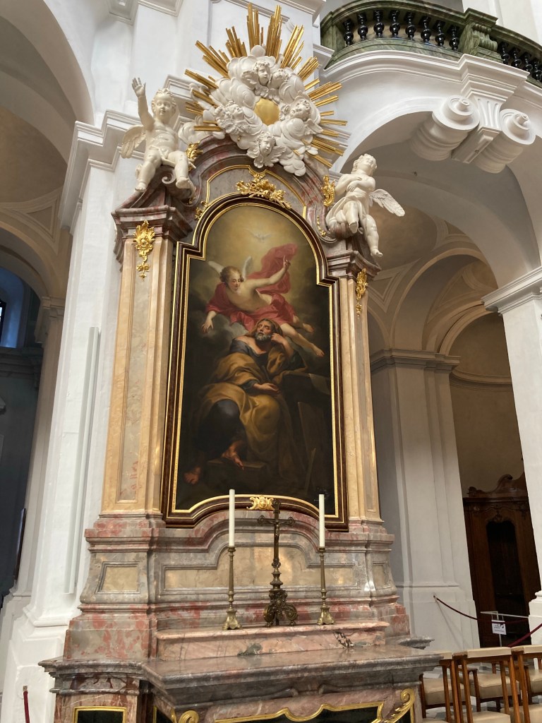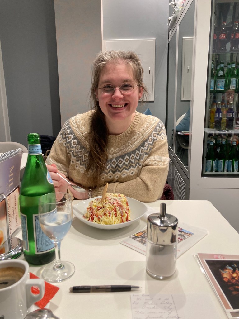 As soon as some cheap flights cam across her radar, she bought them. And that’s how the kinder ended up with Deedee and Papa, while the grownups ended up bouncing across the pond after Saturday evening Mass.