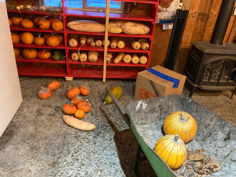 It was already cool, gloomy and damp when we harvest them, so curing them in the sun was not an option. More importantly, there is no spot in the shop that is less than 60% humidity. I don’t think there is a spot on the farm that is <60% humidity. I don’t think there is a spot in Washington (outside of an air conditioned house) that is <60% humidity, between September and June.