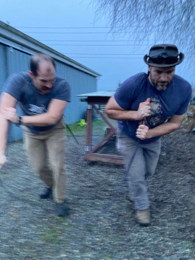 The heavy part of the operation was moving the old chicken tractor onto the garden. This thing was an early design, from back before we even bought the farm.