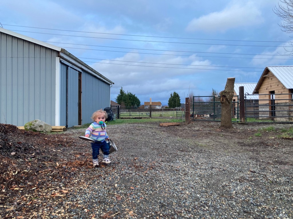 But that didn’t stop her bringing the pig bucket back to the car to be taken home! Never too little to help.