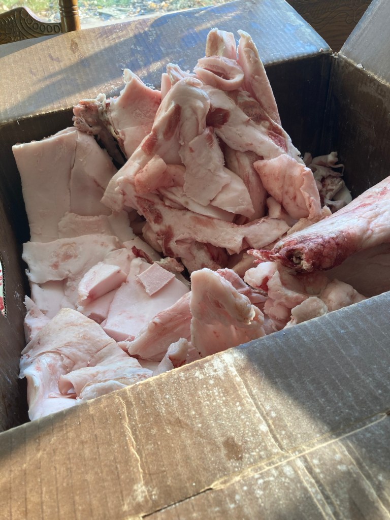 Unfortunately, since we didn’t butcher these pigs ourselves, we weren’t able to separate them out, and all the lard was thrown in boxes together. We were not able to identify which was which with full confidence, so, it all got rendered together. Lesson learned for next year.