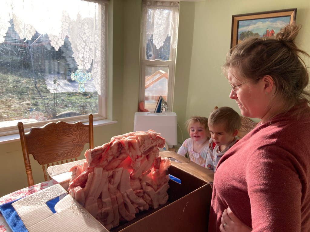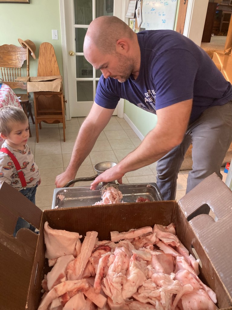 Ryan, tearing apart frozen chunks of lard with his bare, chilled fingers.