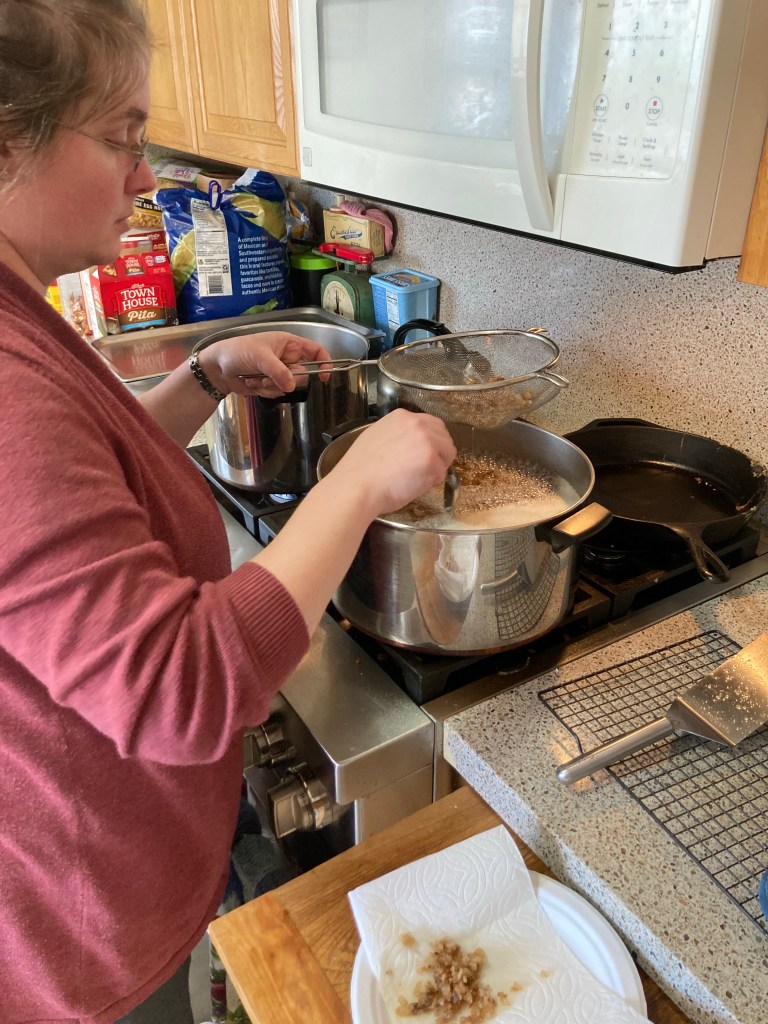 In case you’ve never rendered lard before, it is not a one-person job. It’s more friendly with two.