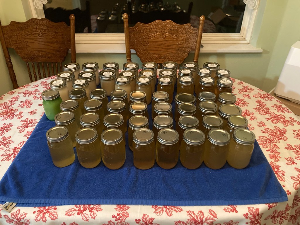Of course, by next morning, all of it had turned white and solidified. 58 pints total, 56 of which sealed.