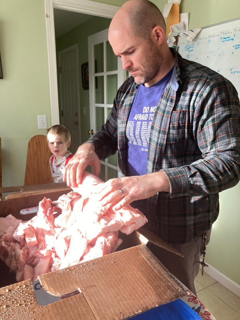 Since we brought home all the pork, it has been living in a pair of boxes in the freezer, and we just haven’t gotten the time to render it all. But since Monday both Ryan and Kathleen had the day off, we decided that this was THE DAY!