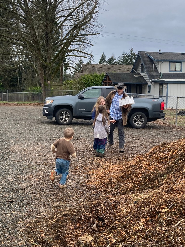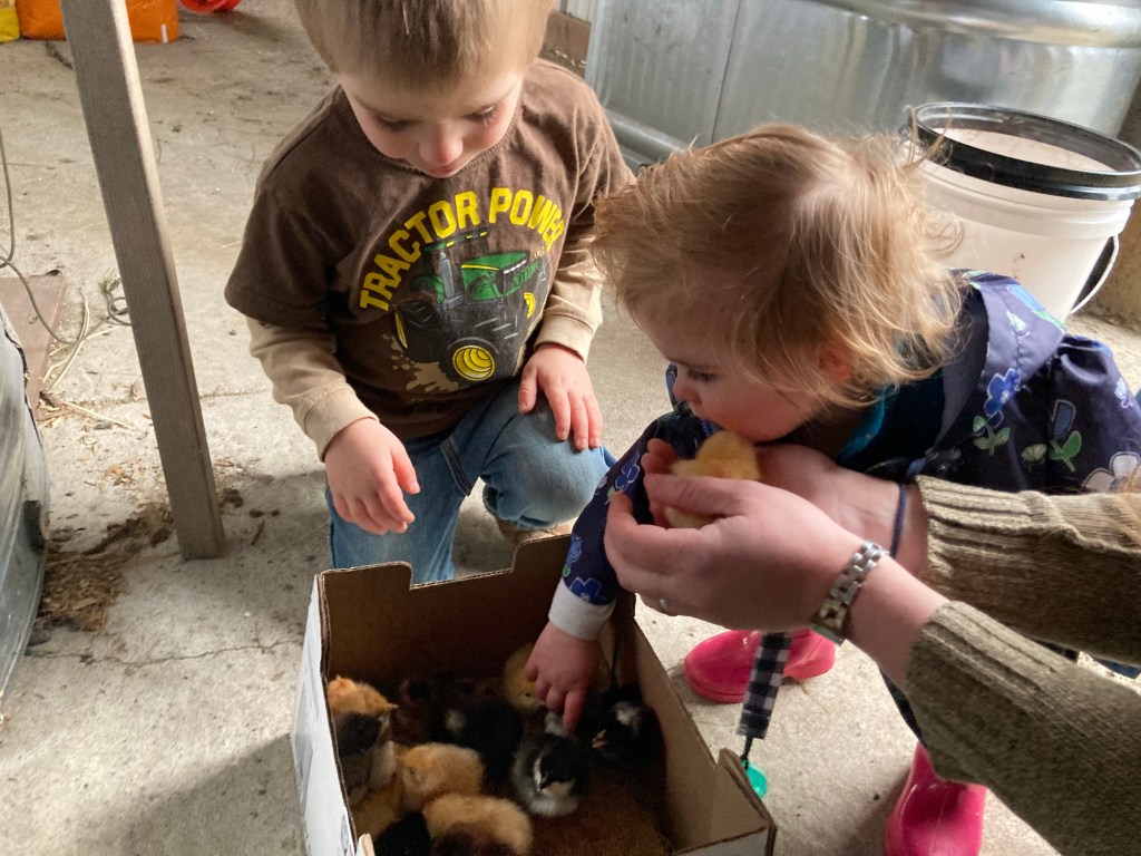 The two older girls are big enough now to help out with the process, after we had calmed them down enough that they wouldn’t accidentally dance on the chicks.