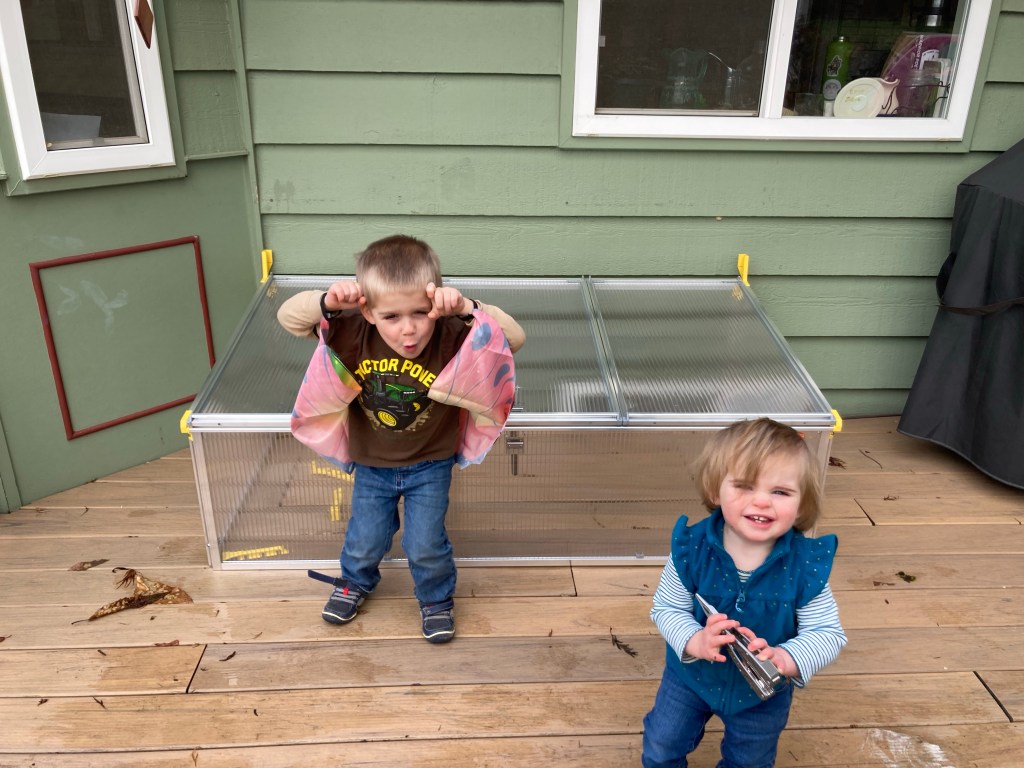 We also put together our new cold frame. We now have two, twice as much space to start plants in, and, God willing, a season extender for lettuces and other greens next fall.
