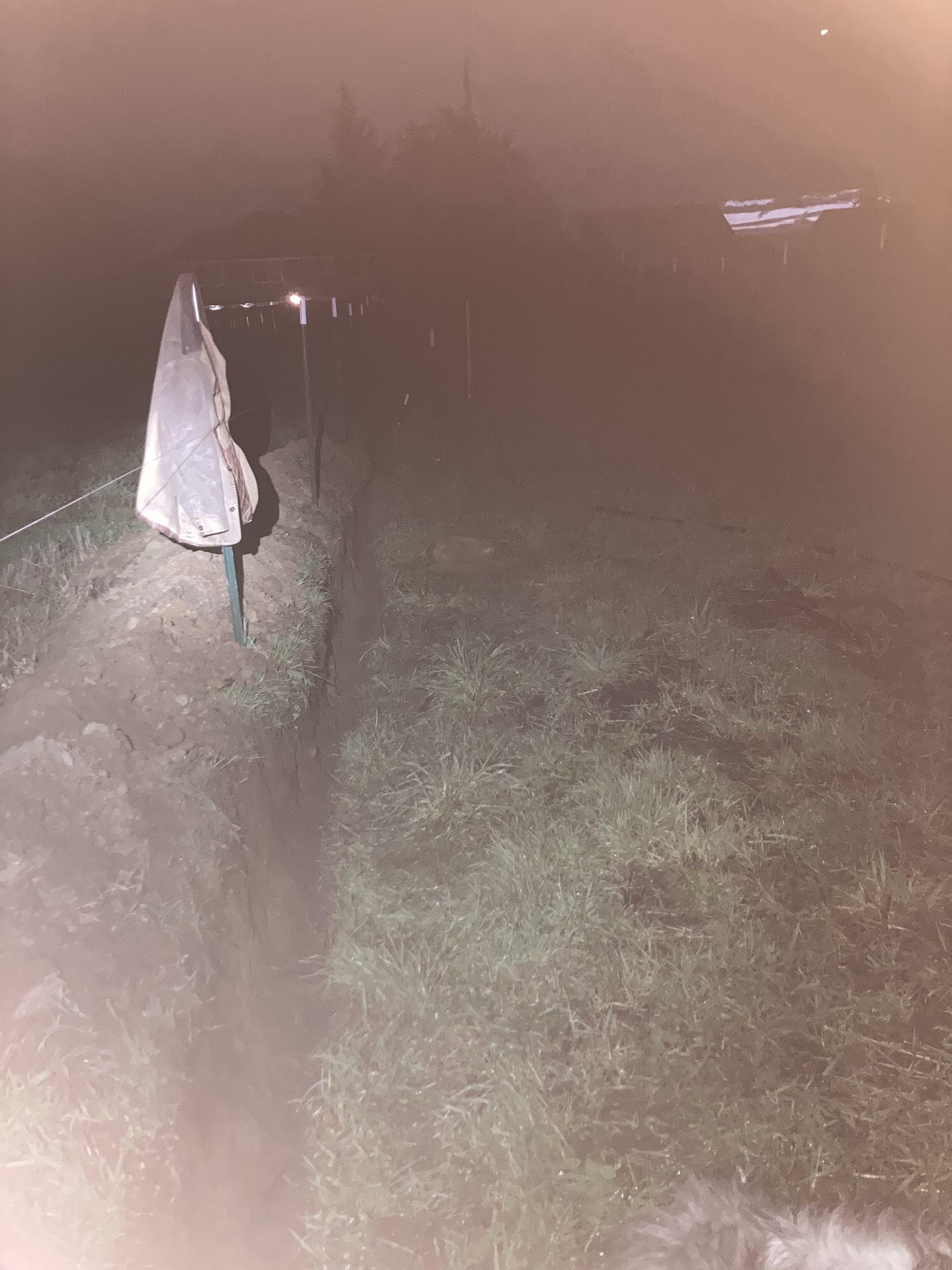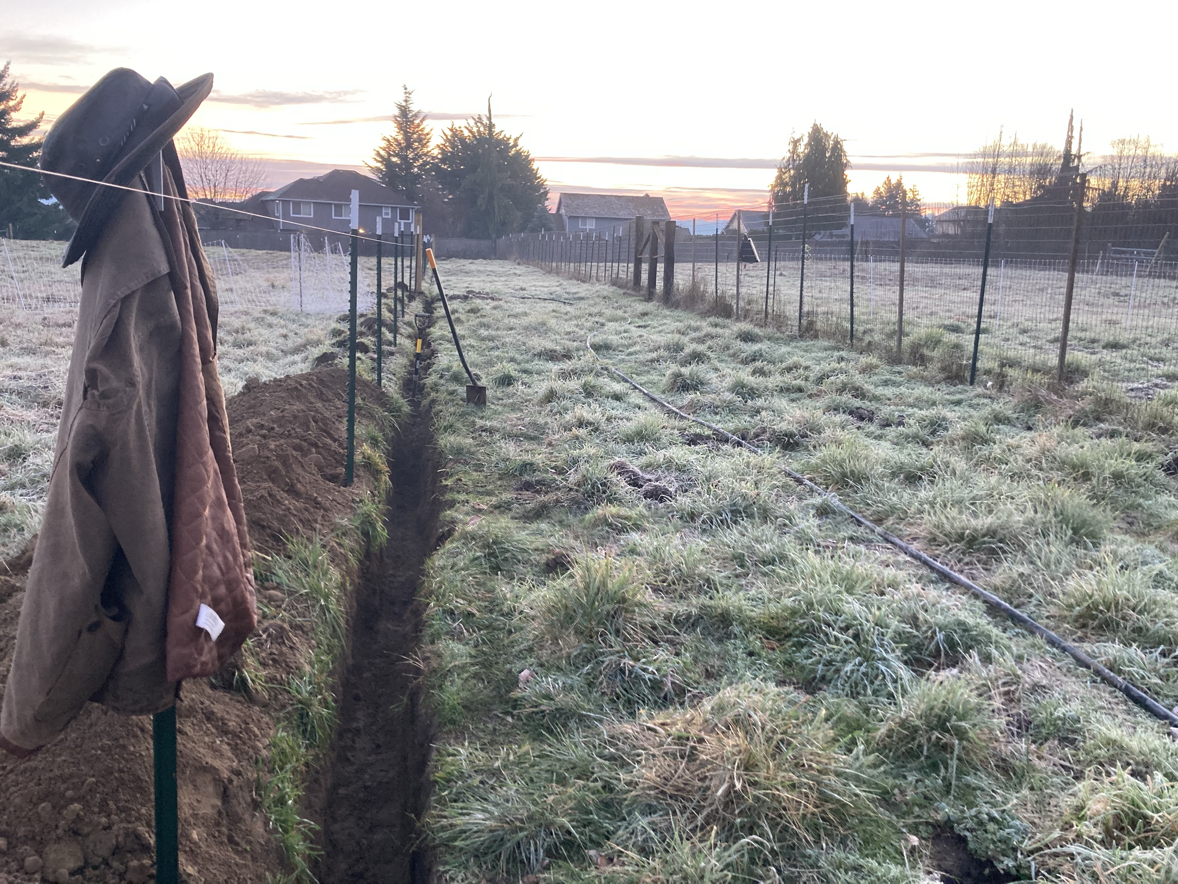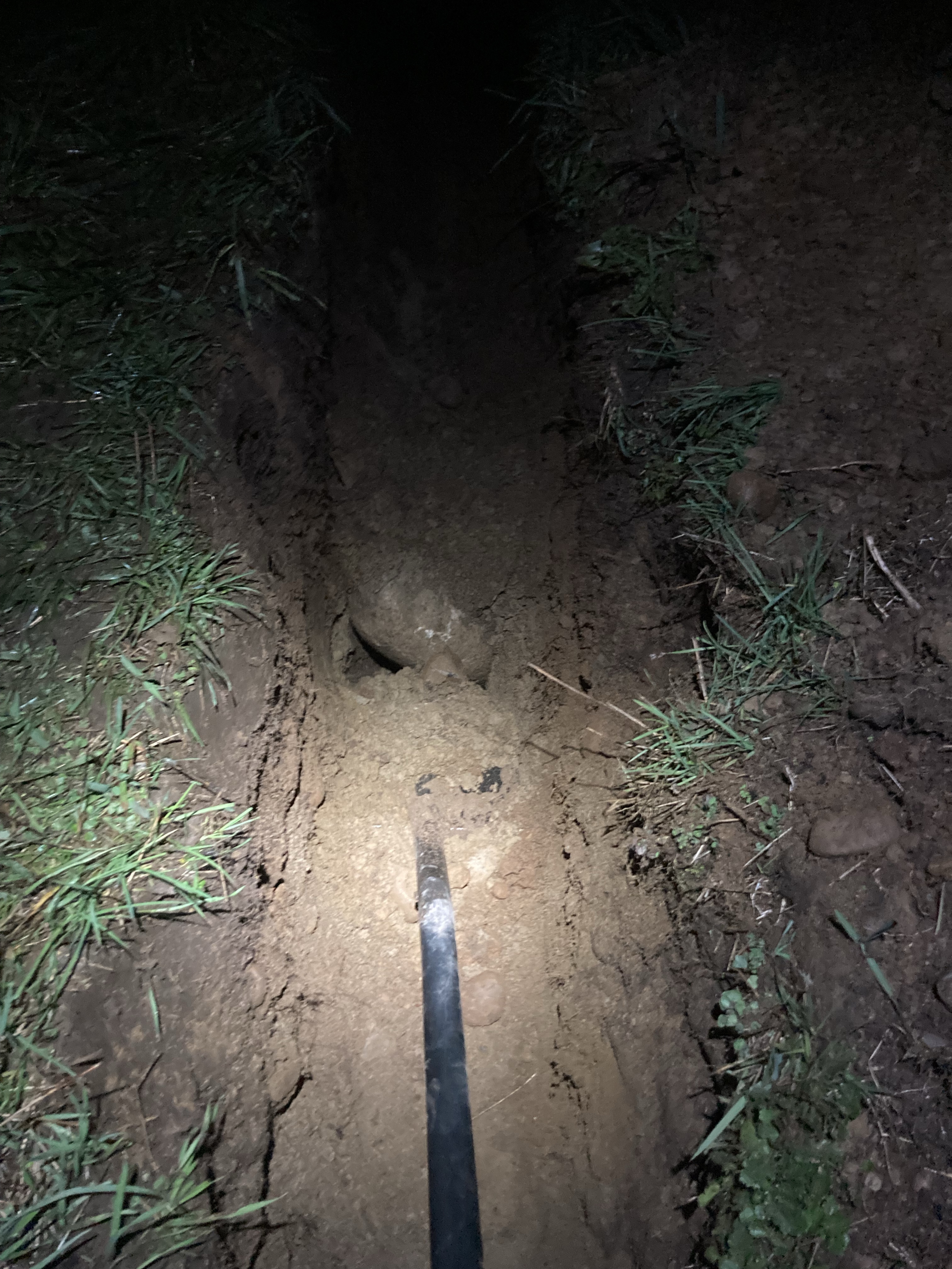 Ryan and Adam have really been pushing hard to get the water line in for the past year. Whatthis involves right now is mainly a lot of digging. The trench has to be extended to at least 18 inches deep, which means that it needs to be wide enough to stand in, and in most cases has to break through Hardpan. Ryan has been doing it and in lieu of his workouts for about an hour him morning, for 10 days now, excluding Sunday. Adam has been joining whenever he can in the mornings.