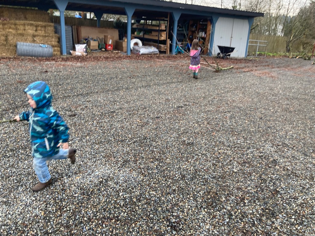 Monday and Tuesday of this week we only got about an hour each day to do any farm work, between weather and school, inside chores and runny noses. We used that brief time to get caught up on some tasks that needed doing in the orchard.