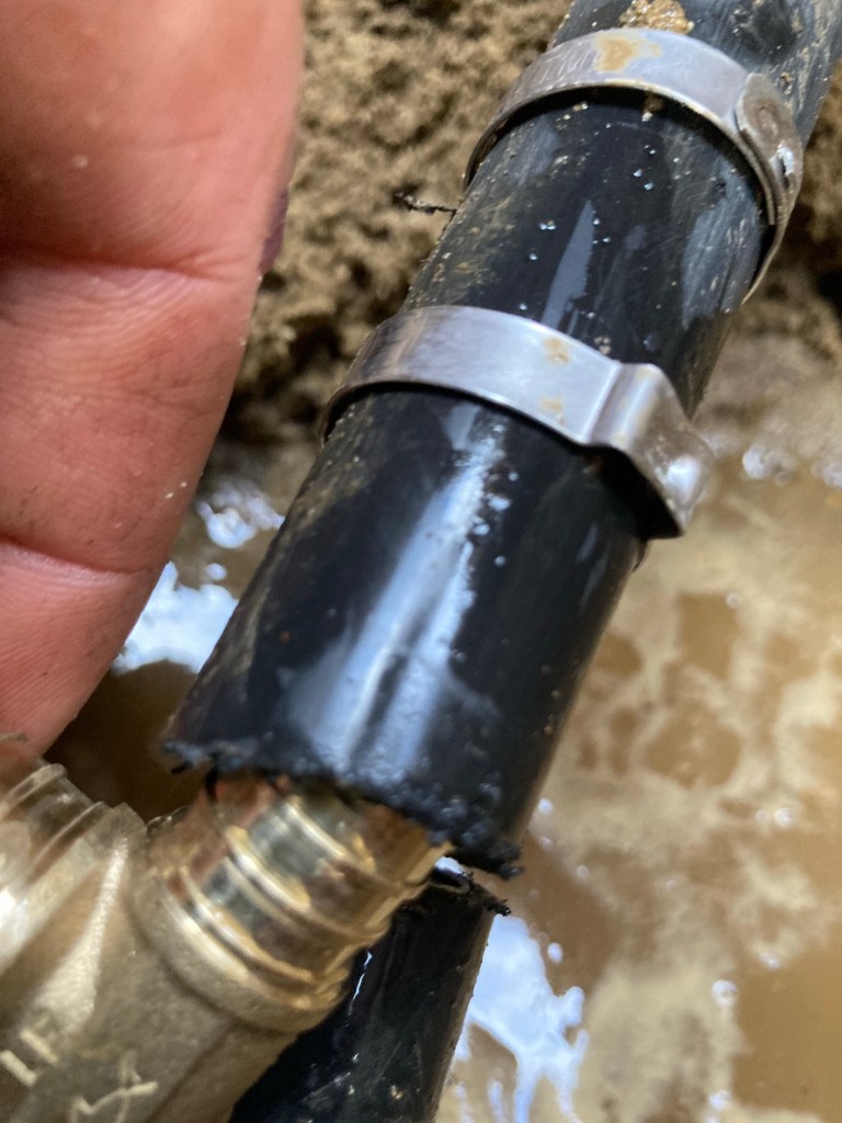 Next step was to cut through the pipe that we are drawing our supply from. As we suspected, it was 3/4 inch poly pipe.