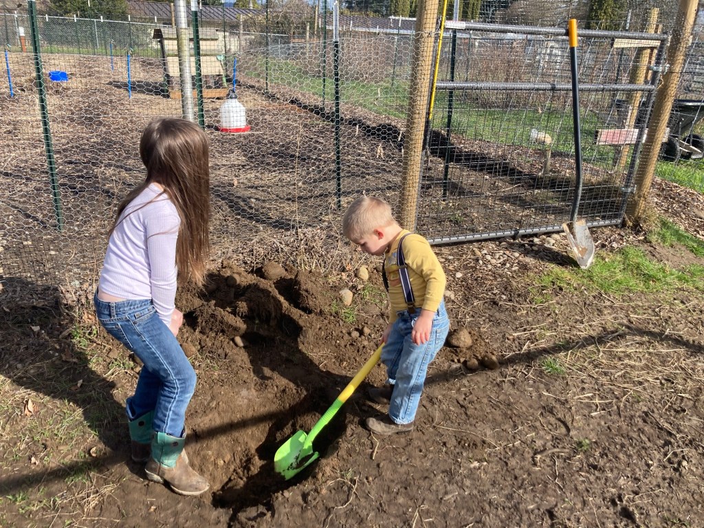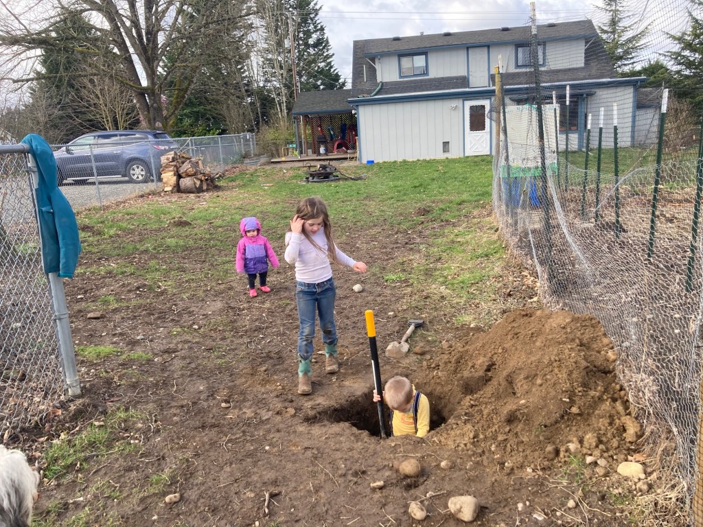 We have been having issues with the dog lately, running back into the berry patch behind the garden. He likes to run back and forth along the fence separating the berry patch from the old orchard, barking his head off at the pigs and the geese, trampling the goumi berries and disturbing the mother goose on her nest. So we are altering the fence line around the garden to keep him out of there. As might be expected, this involves digging.