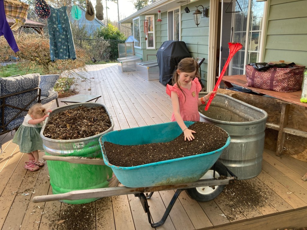 Beautiful weather last Monday. We took the opportunity to clean out the worm bin. The worms have been chilling, most of the winter. They are not as active during cold weather and the eat and poop less. We continue to feed them, of course (mostly egg shells, coffee grounds, tea leaves and banana peels, most everything else goes to the pigs), and the bin does not overflow, but we don’t have to supplement with paper shreds as often.