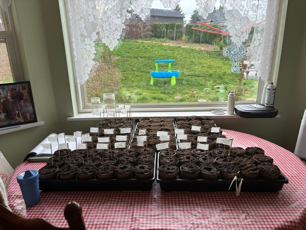 We started some seeds indoors, specifically the first round of bok choy (planning for three plantings over 6 weeks); summer broccoli; summer cabbage; and two varieties of brussels sprouts. We have never had good luck with brussel sprouts. We get big, beautiful plants that produce nothing but empty, squishy blobs of loose leaves. After some research we think if may be do to low calcium, which we know our soil is likely deficient in, so we are going to lime the brassica bead, probably this coming weekend. Should have done it last November, but then again, we should have done all the garden prep last November too, so…