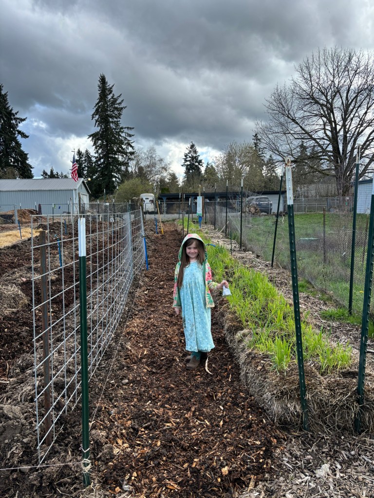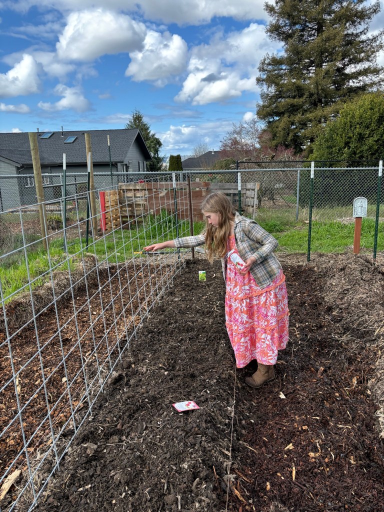 Once the beds were prepped, Ellie planted peas, lettuce and spinach.