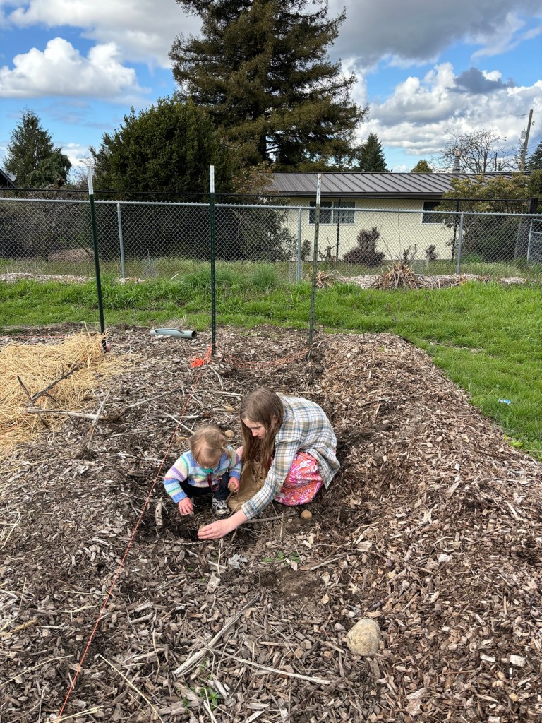 Evie and Winnie planted potatos. Apparently, Saint Patrick’s day is traditional for planting potatoes, but, well, we were busy. St. Patrick will forgive us.