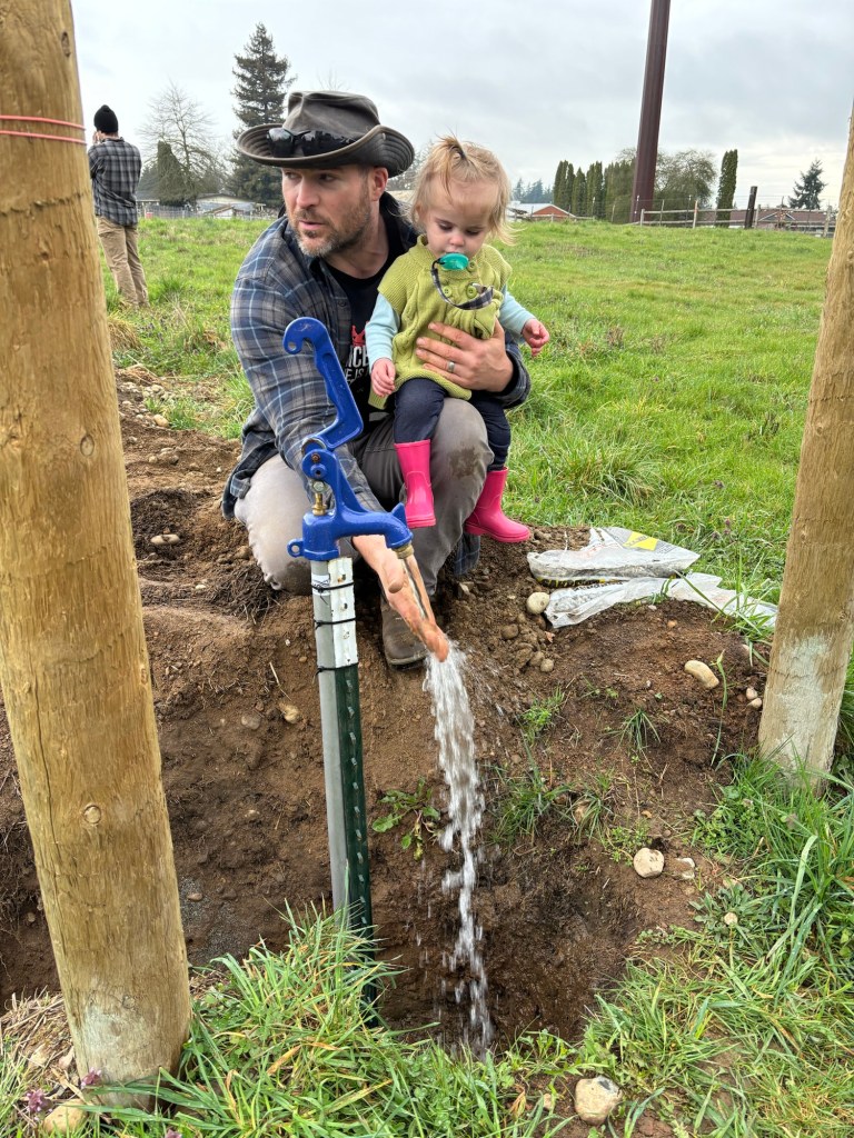 Then Mommy and Daddy went to the back of the pasture to document the fitting of the final crimp ring, and installation of the final frost-free hydrant.