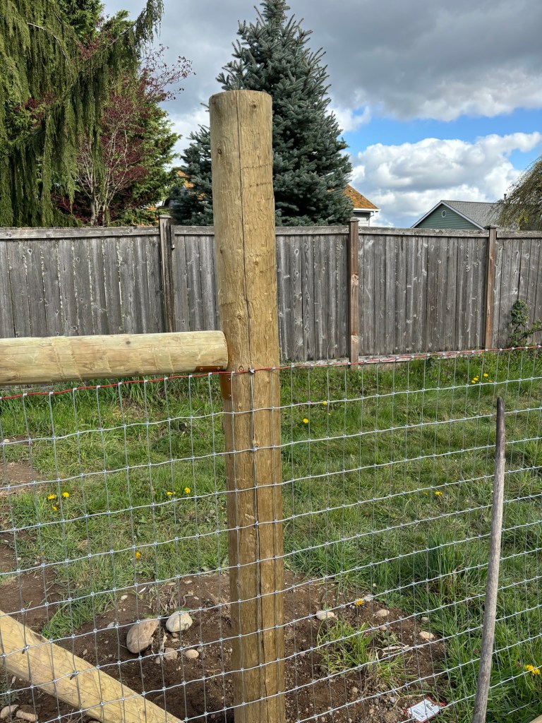 The final corner of the field is the southeast fence. OUr friend Nicholas came over yesterday and helped stretch this, and thanks to his help we were able to make some great progress. Unfortunately, we had some setbacks and some upset tummies, so we didn’t get it quite finished.