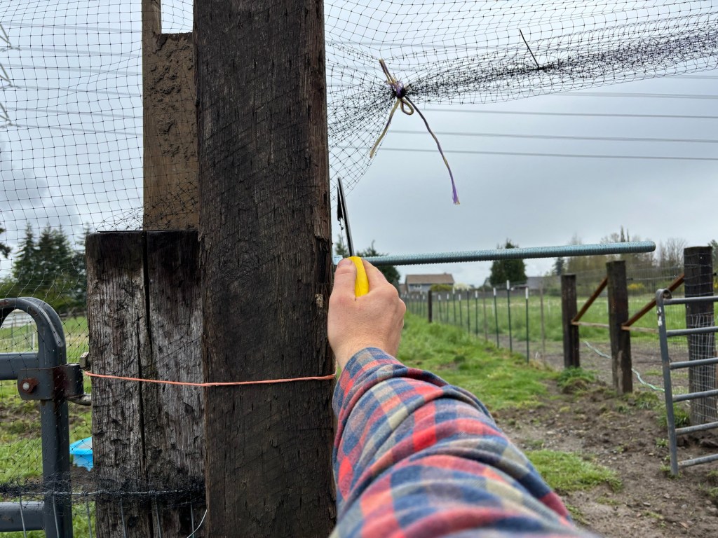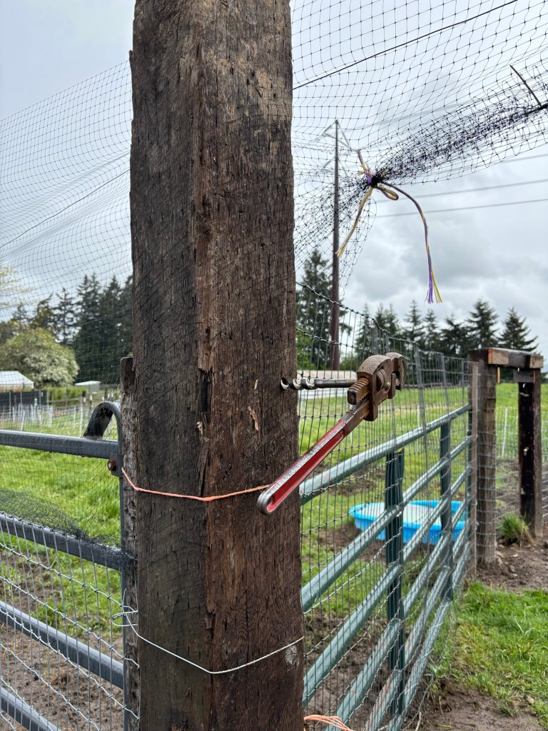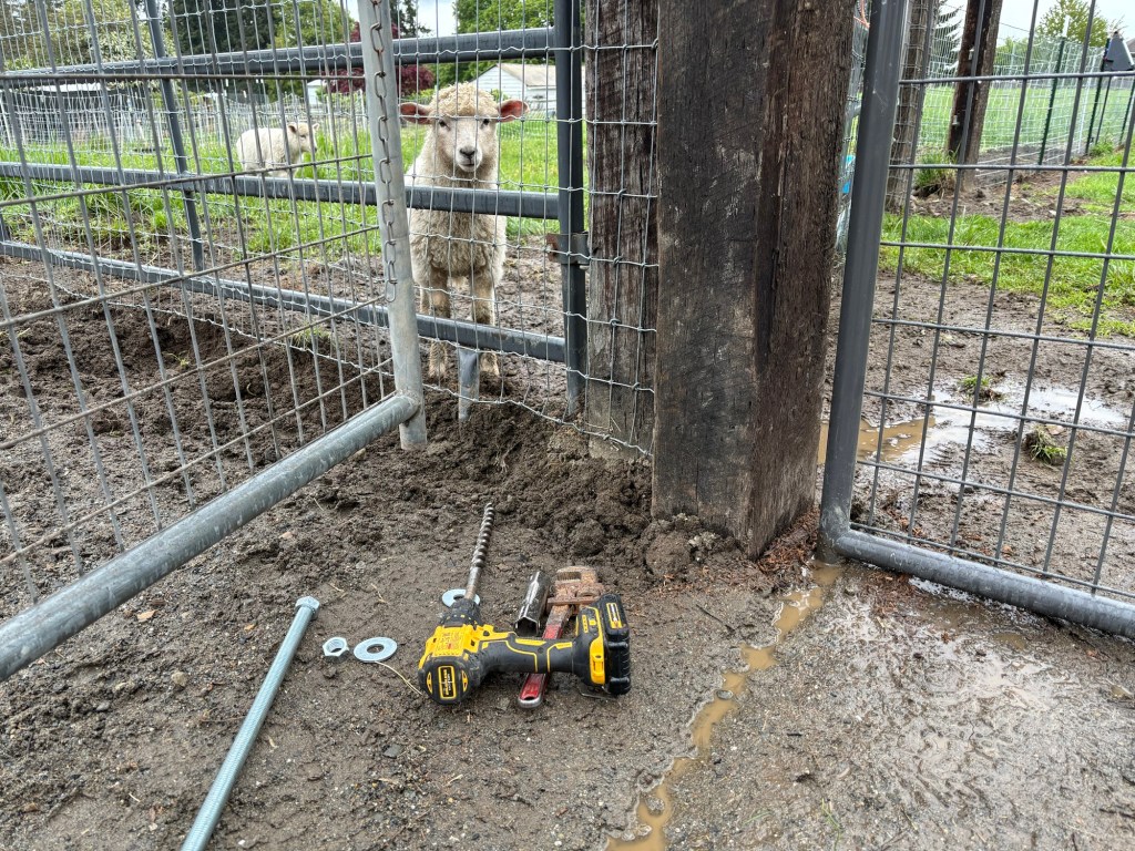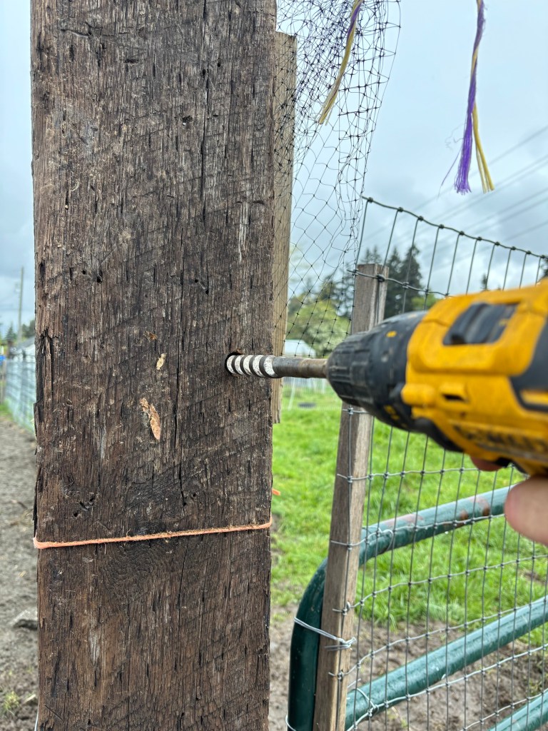 A week ago I did a bit of “fancy” fencing to get a gap closed. However, despite how fancy the chiseled notches looked (not that fancy), at the end of the day it was only tied in place with one bail twine and one wire tie.