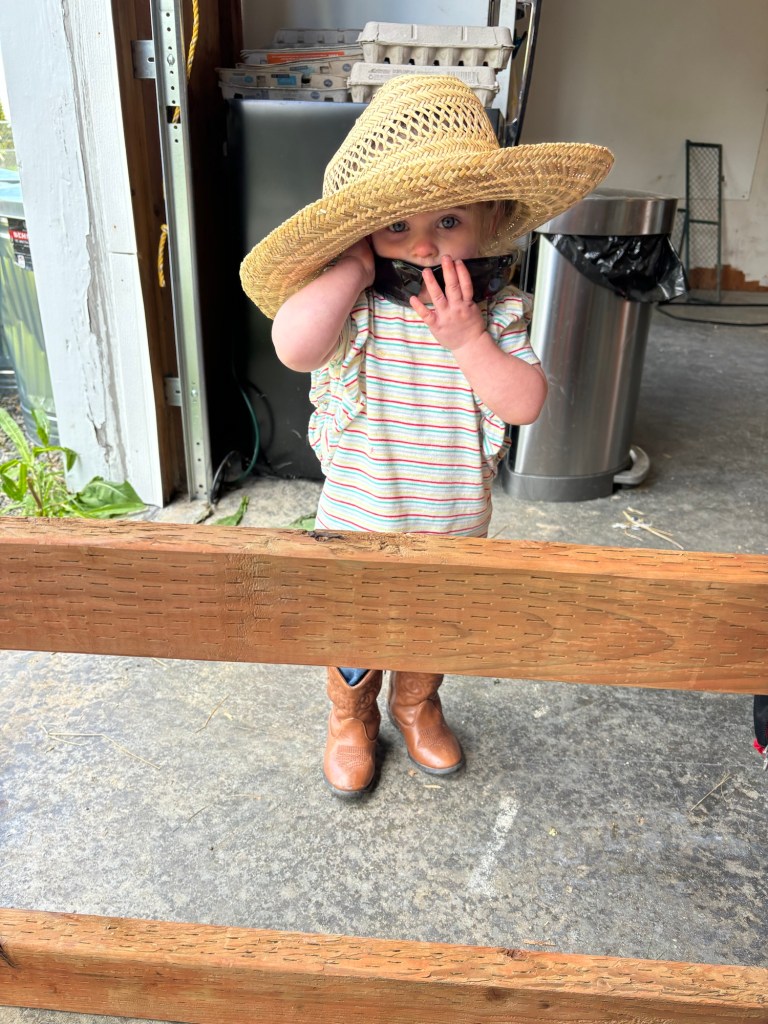 Miss Winnie fits Seppi’s old cowboy boots.
