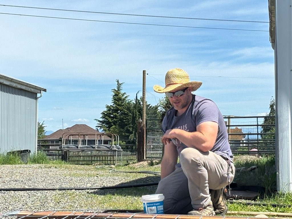 Incidentally, Ryan had always planned to build two shade mobiles, one for large ruminants, and one for chickens. However, when we were building the last one he got stuck thinking through how he was going to build and brace the doorway, and started actually piecing it together, and next thing you know, we had a mobile chicken shelter.