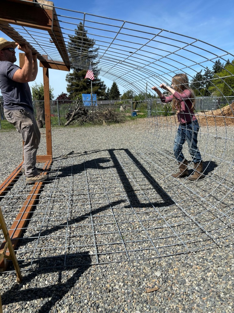 The last shade mobile we built had a door. This is because, eventually, we plan on enclosing it in chicken wire and putting chickens in it. However, this is not ideal for cows, as they can get stuck in the doorway and break it. So we made another shade mobile last Tuesday.