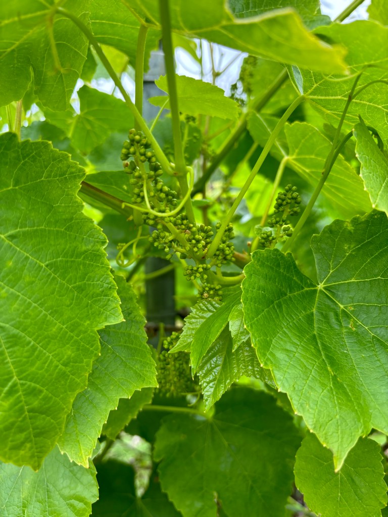 Grapevines are loaded with blossoms this year. When we planted them almost 8 years ago we underestimated how wild they would get. They didn’t really take off until we mulched the bases and now they just take over everything. The new grapevines at the farm are also mulched and growing like it’s their job. Which, of course, it is.