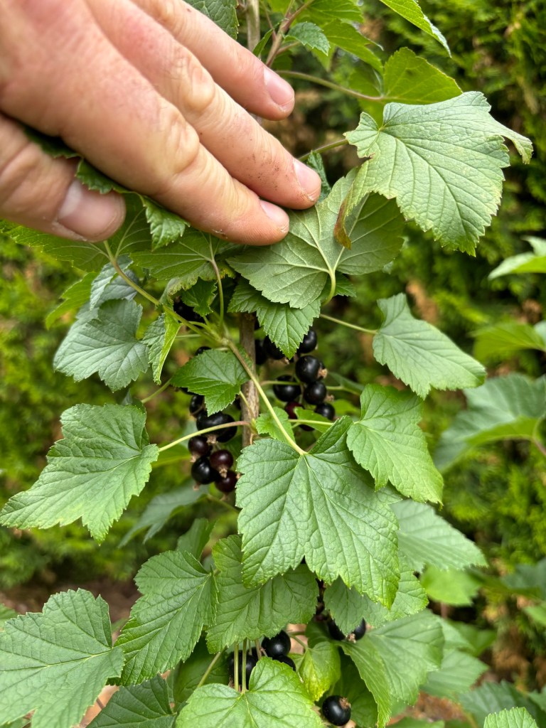Something is coming into season every couple of weeks all summer long. Here we see the black currants starting to turn black.