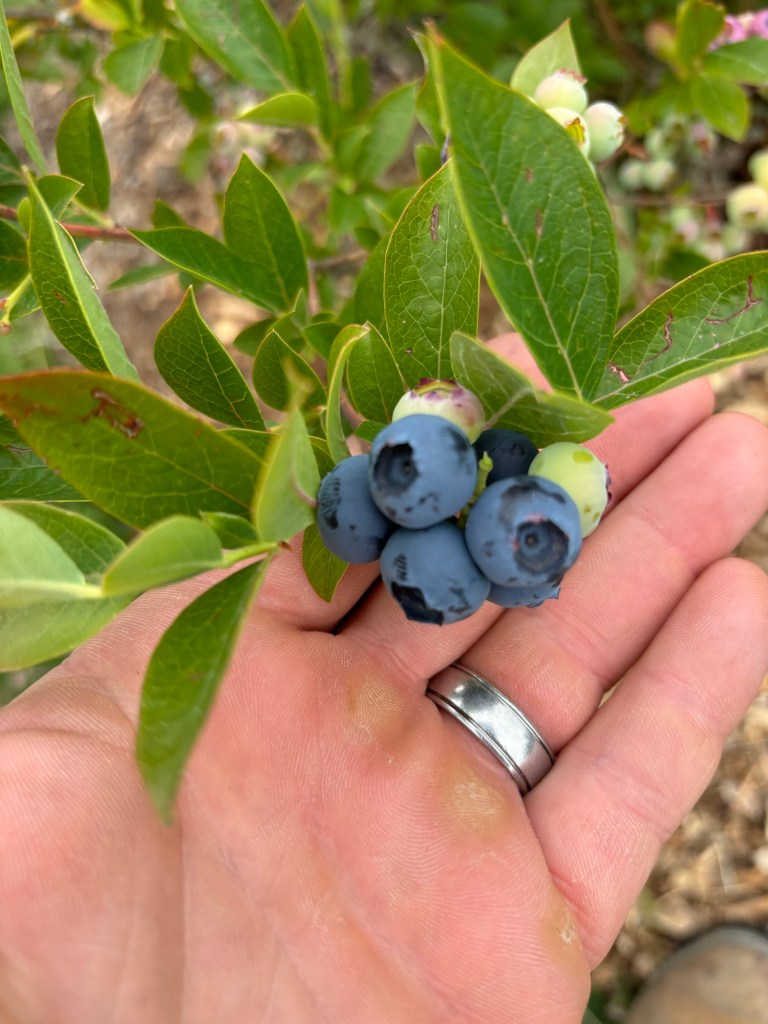 The kids ate every last honeyberry on the bush while Daddy was away, but not to worry. One of the advantages of having so many different types of fruit planted…
