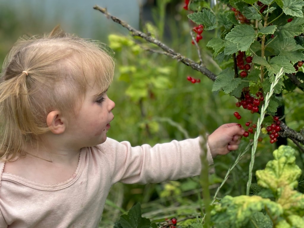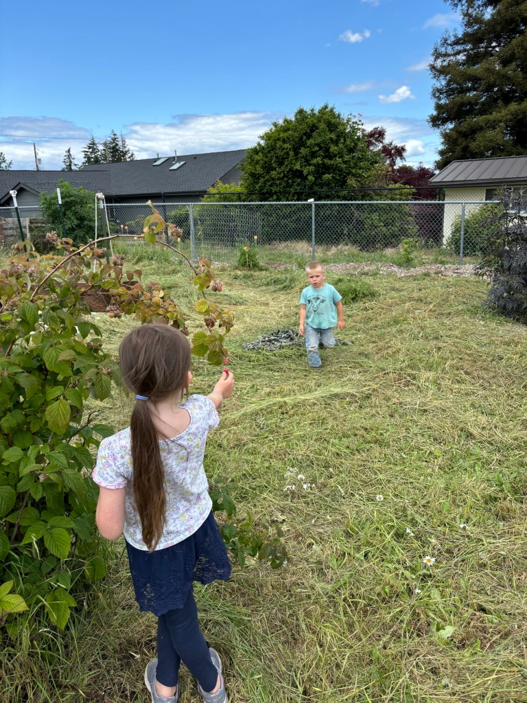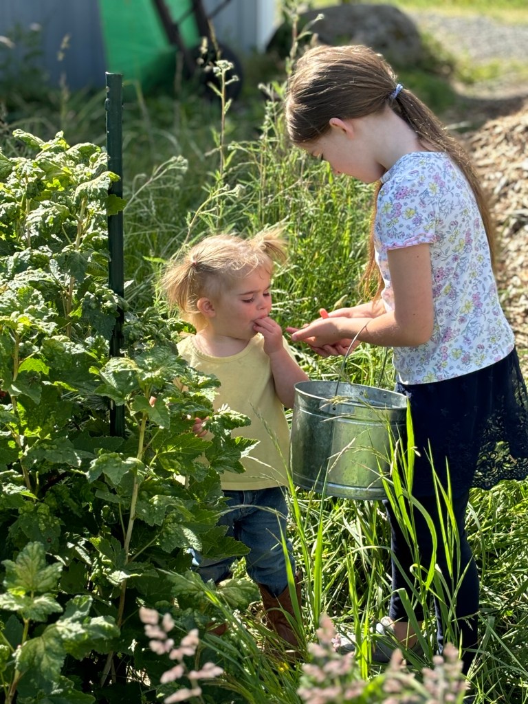 We draw the line at the raspberries. The kids can go to town on the currants, the blueberries, the josta berries and the honey berries, the gooseberries, and even the goumi berries when they start coming in a week or so.