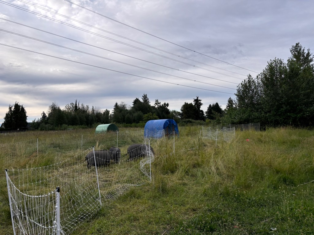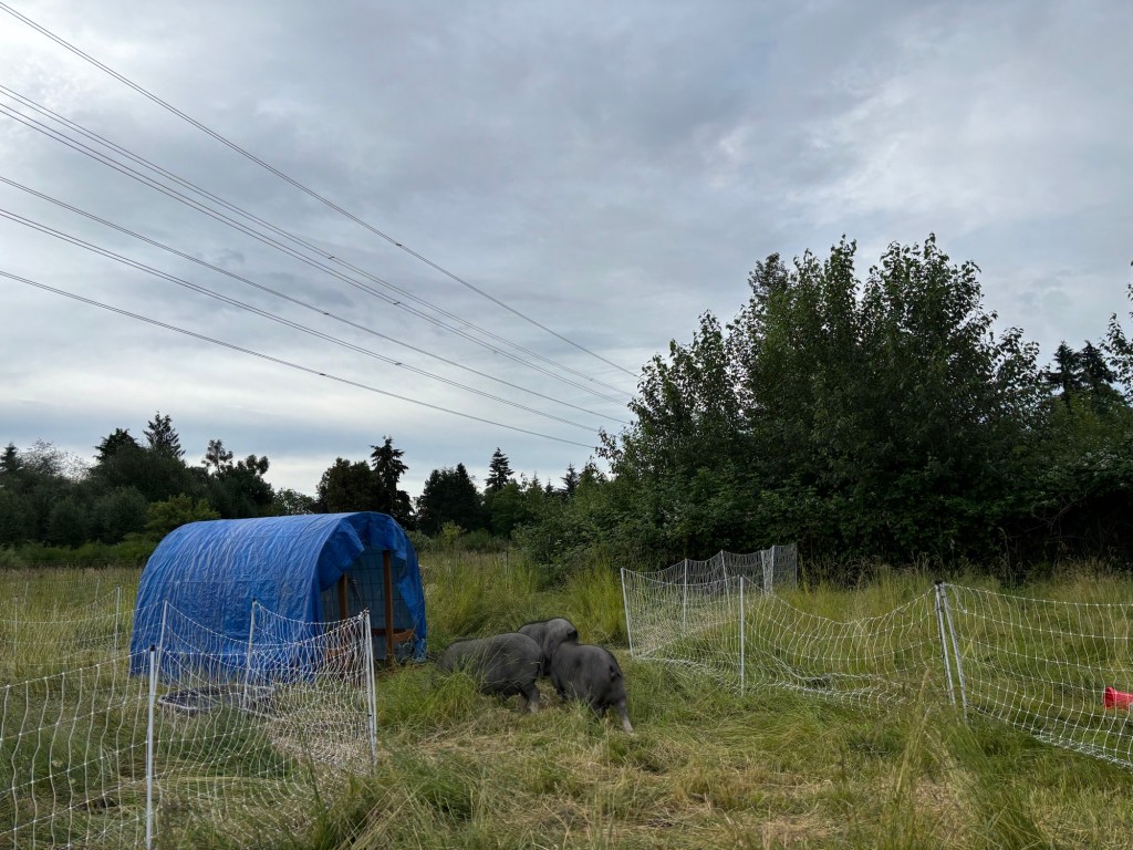 A shade-mobile we already have, which wasn’t suitable for cows, but had not yet been modified for chickens and so would do for pigs in a pinch. Ideally you don’t want to have pigs in a pinch. Pigs in a pinch are unpredictable, but if you find yourself with pigs in a pinch, at least you can provide them with some shade.