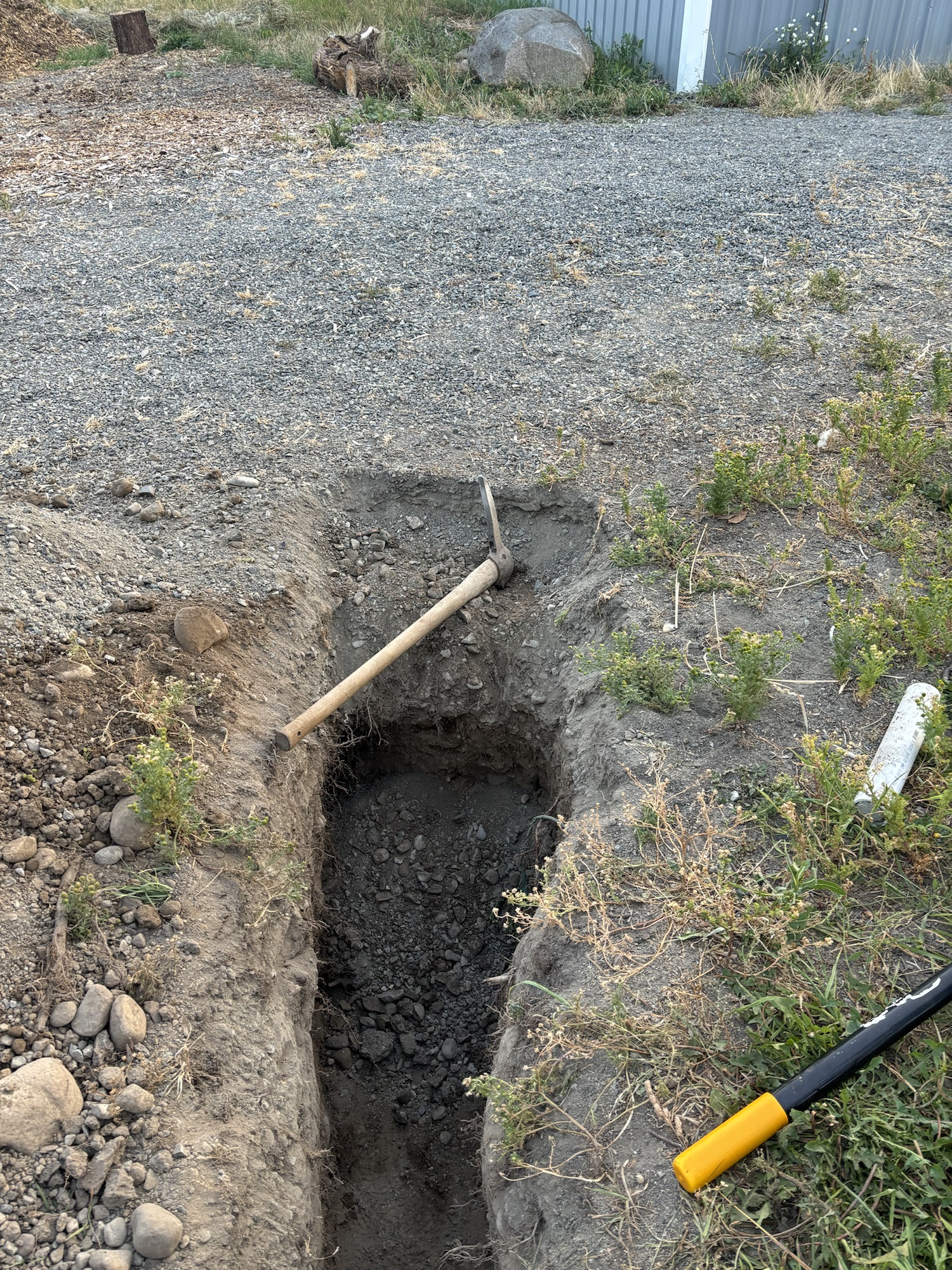 Not to worry, just under 2 feet of hard pan, is nice, soft, silty dirt that is a dream to cut through until you hit a rock the size of your head every five minutes.