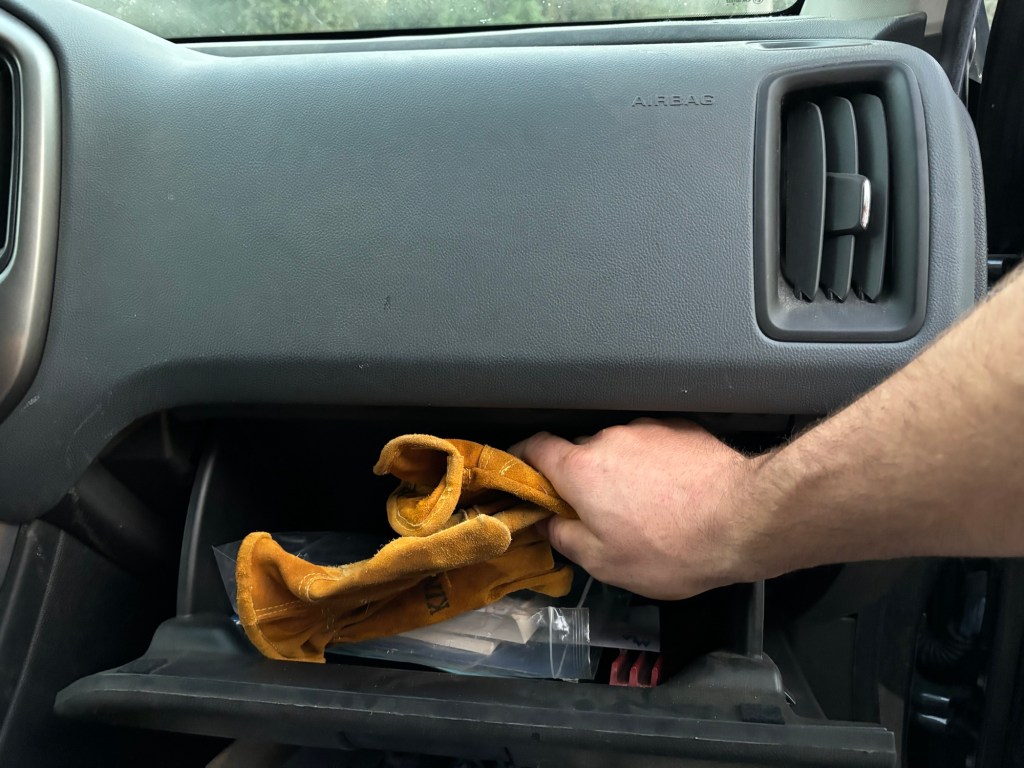 If only they were can parts of sorts, cleverly and unobtrusively built into the very structure of the interior of my truck. For gloves.”