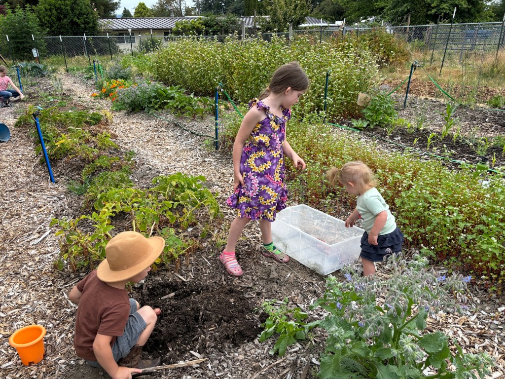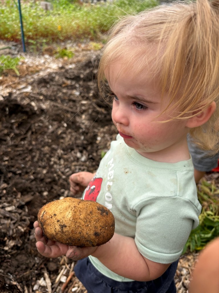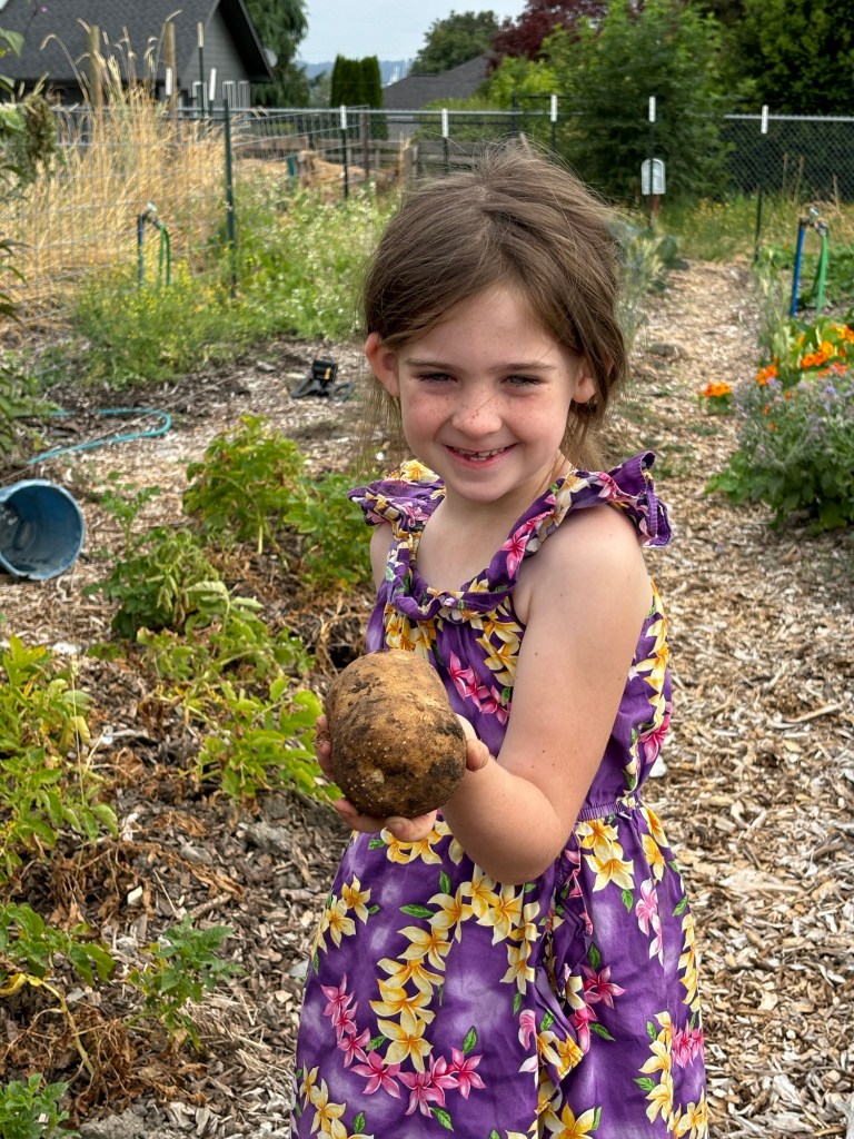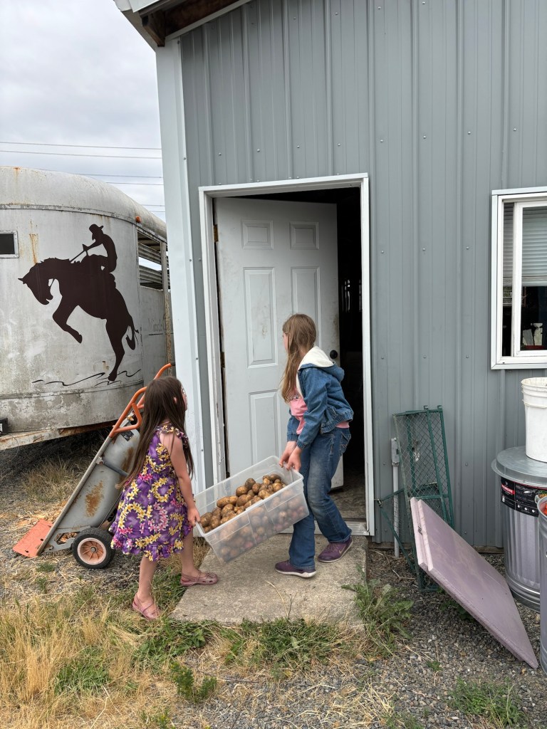 The kids thought this was great fun. Daddy lifted them with the spading fork, and the kids dived on them like vultures, racing to see who could fill their box first.