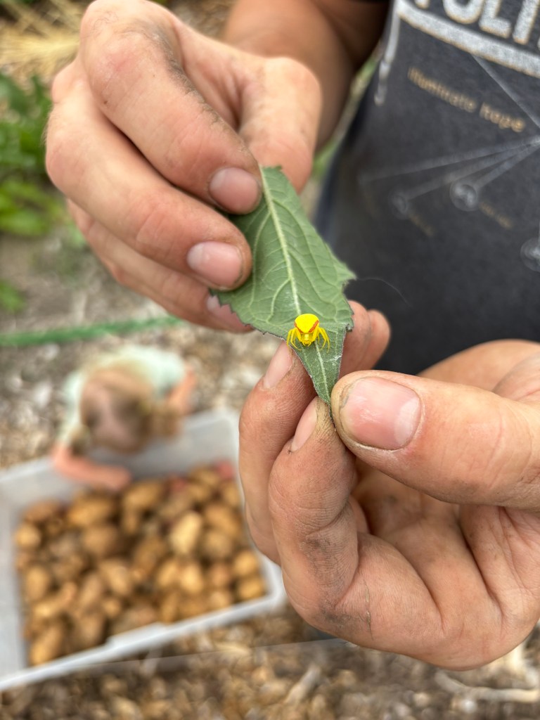 Uncle stopped by to find a strange bug and show it to everyone. (He was otherwise busy, setting up the next round of paddocks in the north pasture).