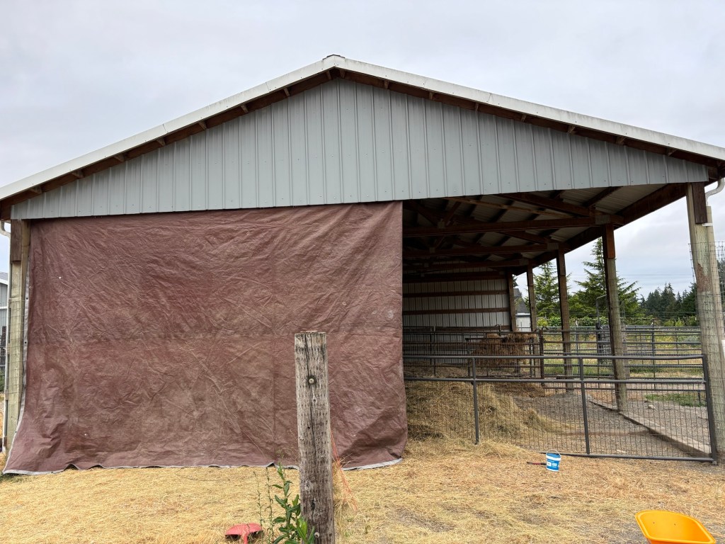 We are supposed to get a quarter inch of rain tomorrow, so needed to do something to protect the hay that we just bought.