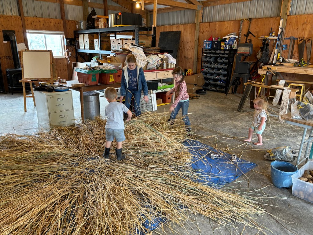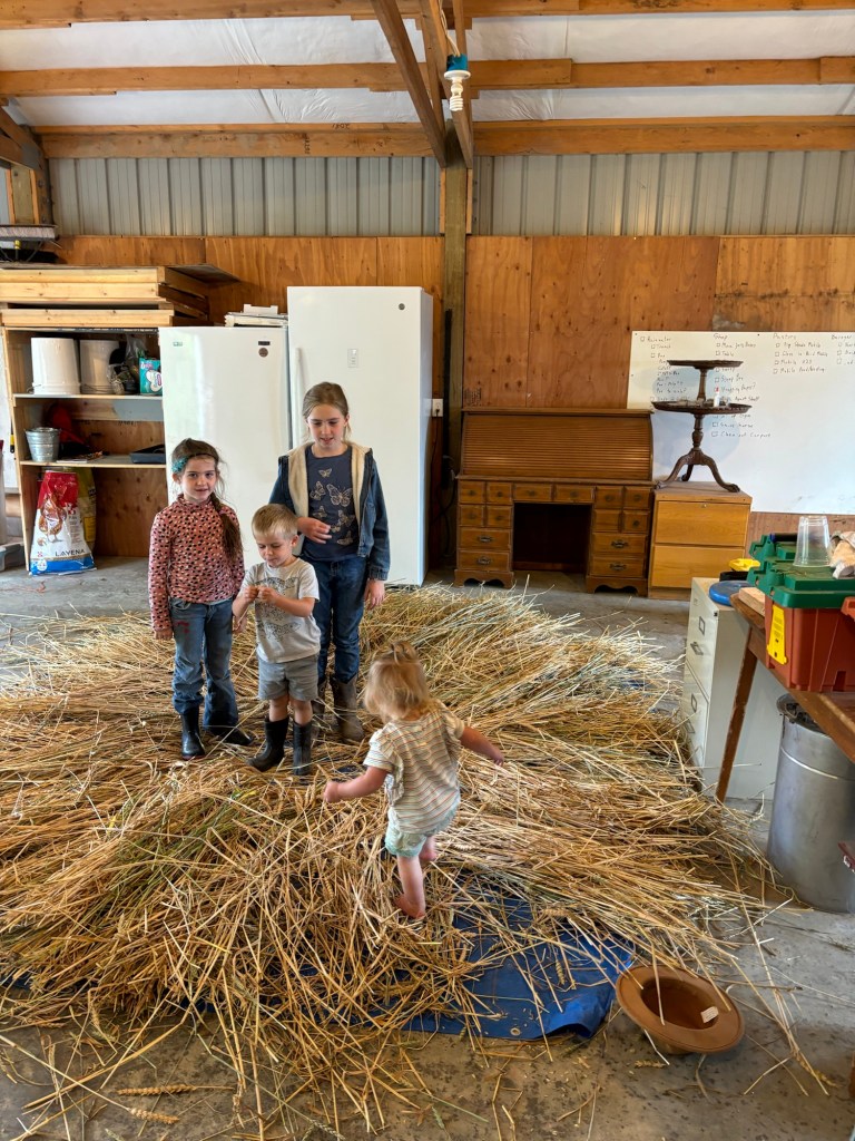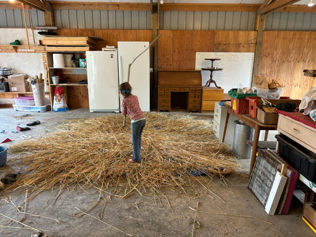So there we had a giant pile of wheat and straw on a little tarp in the middle of the shop floor.