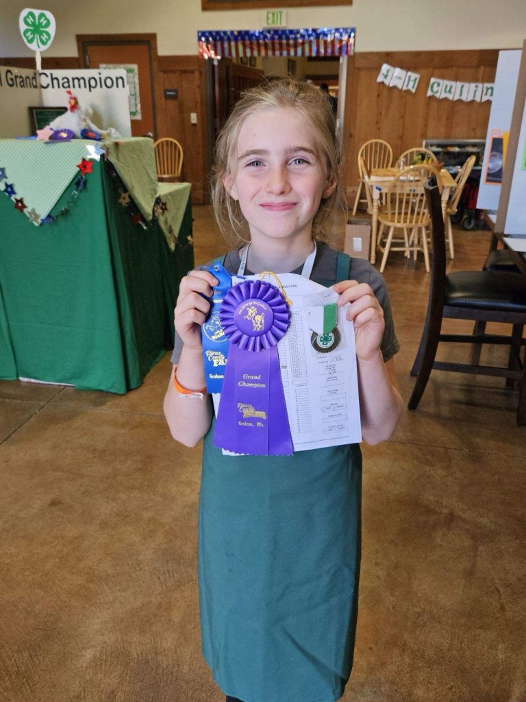Evie took part in the sewing judging event, and got the highest score at the fair, Grand Champion!